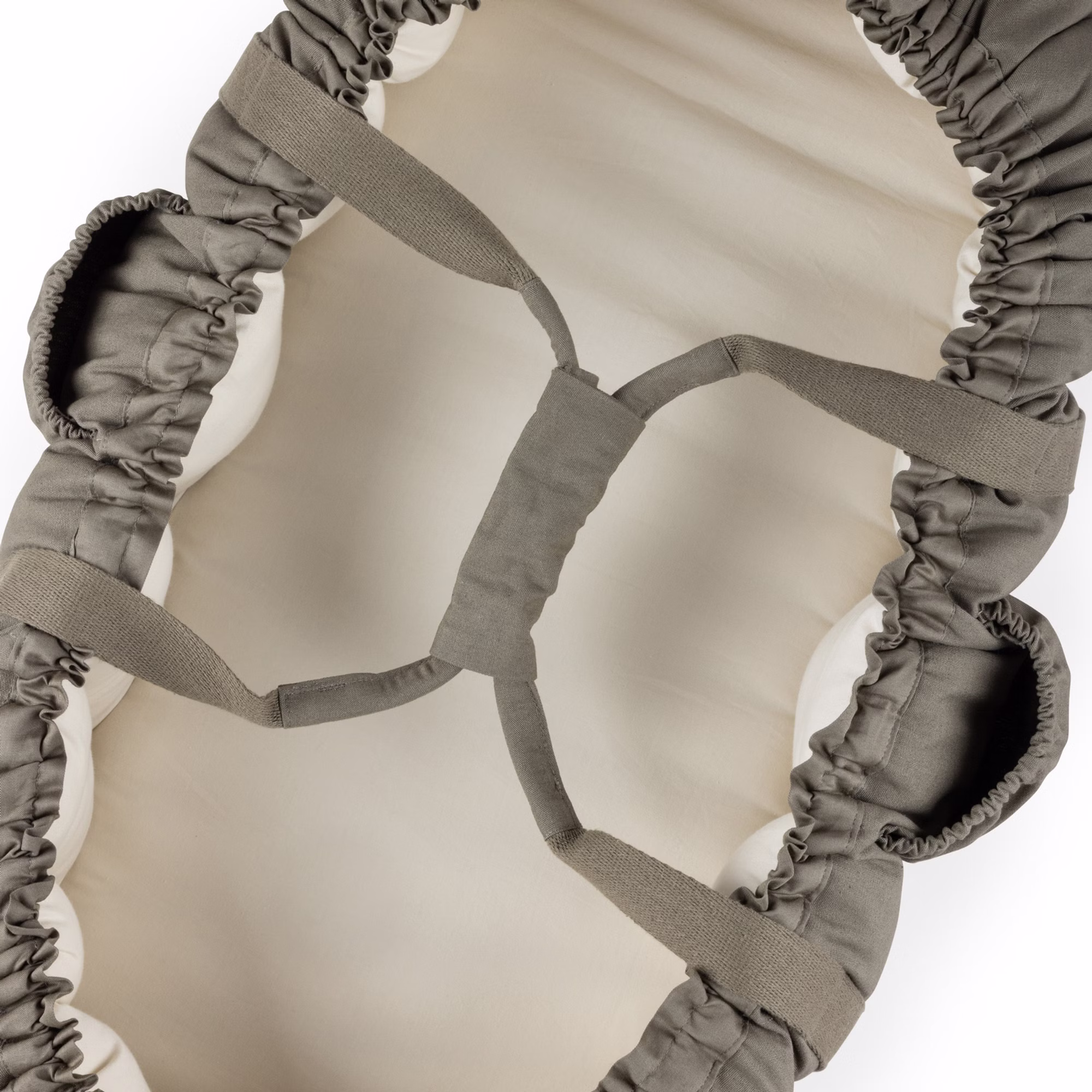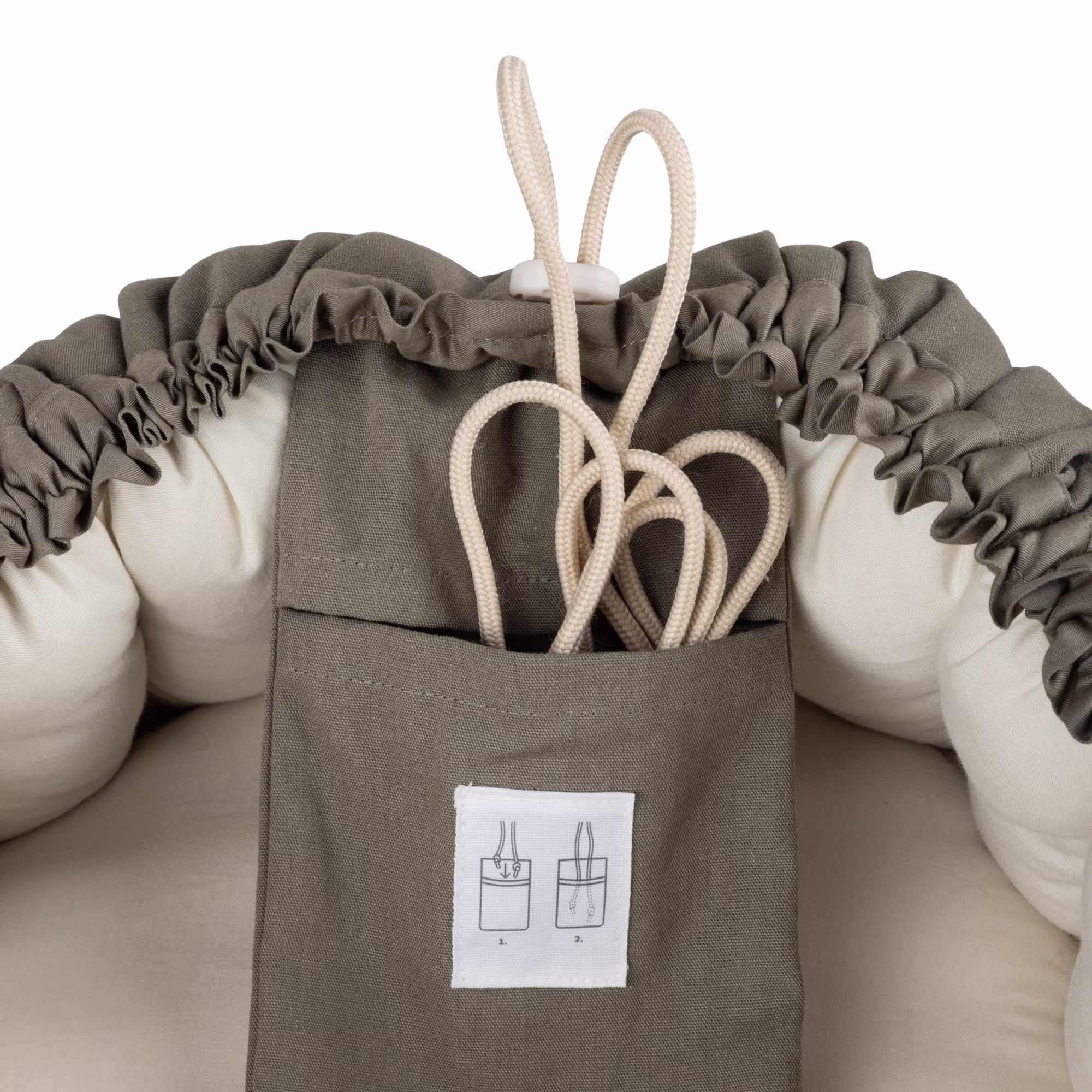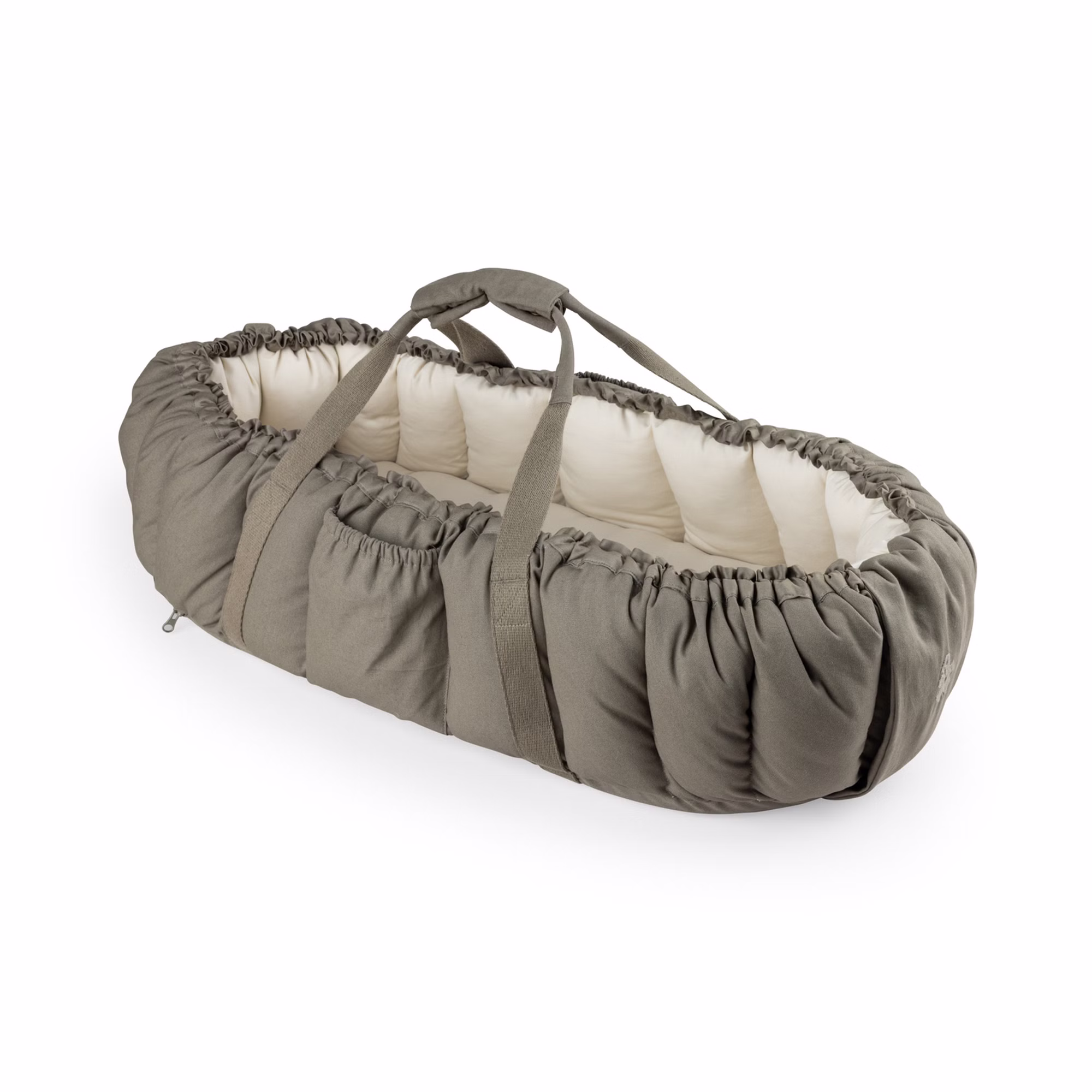 Das Nestchen verfügt über Griffe, die zusammengeschlossen werden können, damit Sie nicht Gefahr laufen, einen Griff aus Versehen loszulassen, wenn Sie das Babynest als Babylift verwenden. Darüber hinaus gibt es zwei praktische Taschen an den Seiten für Schnuller und andere wichtige Utensilien. Das Babynest passt in Kinderwagen und Buggys und kann auf diese Weise den traditionellen Babylift ersetzen.