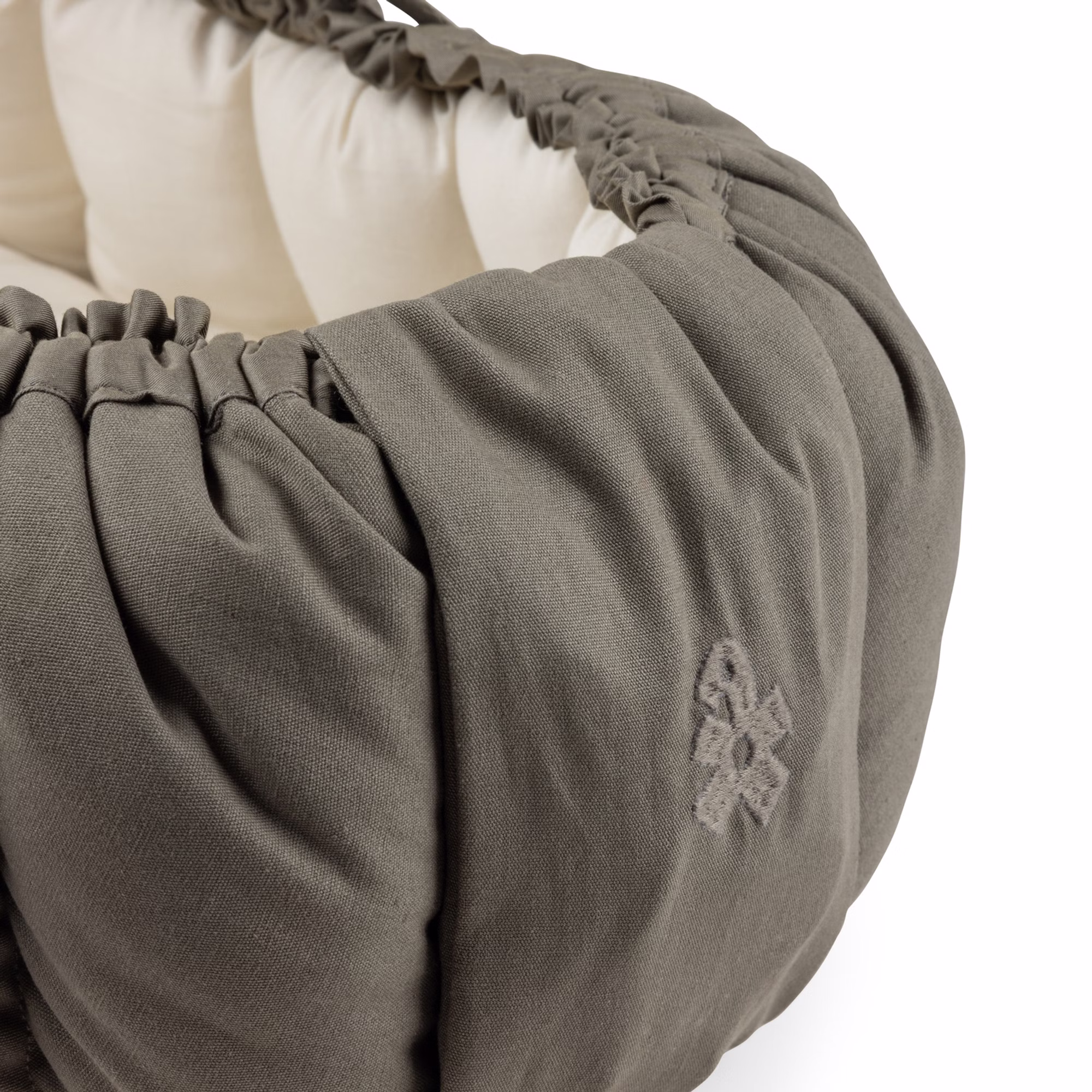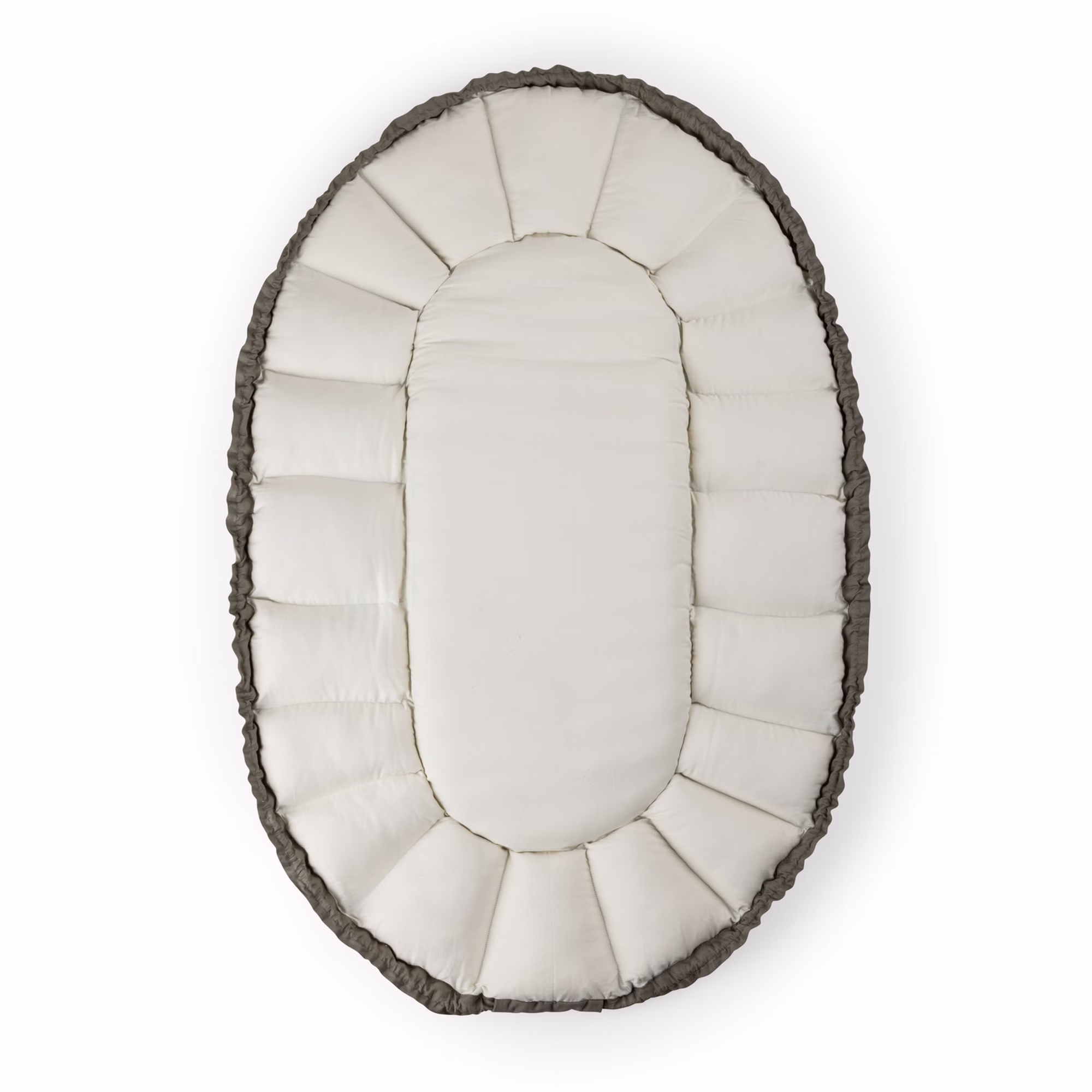 Mit dem 3-in-1-Babynest erhalten Sie ein wunderbares Babynest, einen Babylift und eine Spielmatte in einem Produkt, das sicher und funktional zugleich ist. Das Babynest wird aus sorgfältig ausgewählten Materialien hergestellt und gemäß den europäischen Sicherheitsstandards für Babylift und Spielmatten getestet. Die Matratze des Babynests zeichnet sich durch seine Kapokfüllung in den Seiten aus. Diese seidenweiche Naturfaser enthält einen natürlichen antibakteriellen Bitterstoff, der es Hausstaubmilben unmöglich macht, darin zu leben. Dies macht Kapok ideal für Allergiker. Kapok ist außerdem wärmeregulierend.