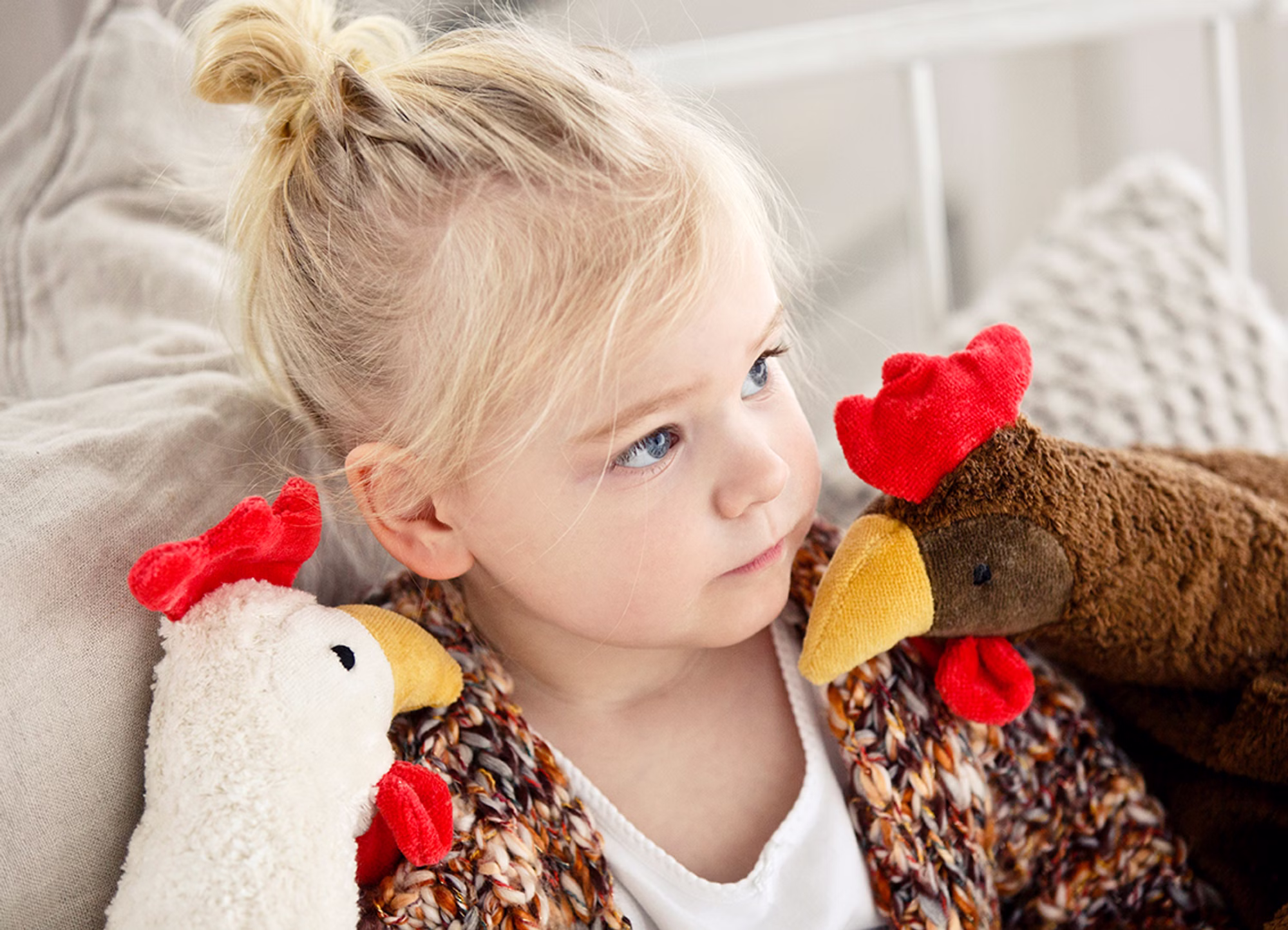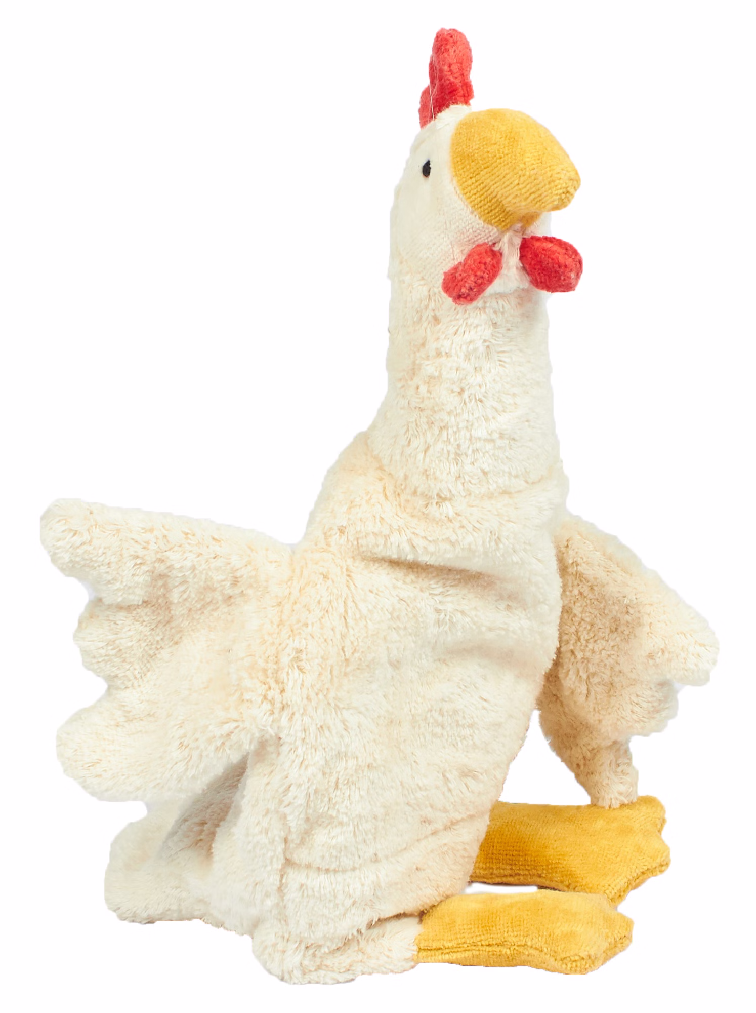 Dieses wundervolle Kuscheltier spendet Freude und Wärme zugleich. Die Hülle aus ökologischer Baumwolle macht das Huhn weich und anschmiegsam.
