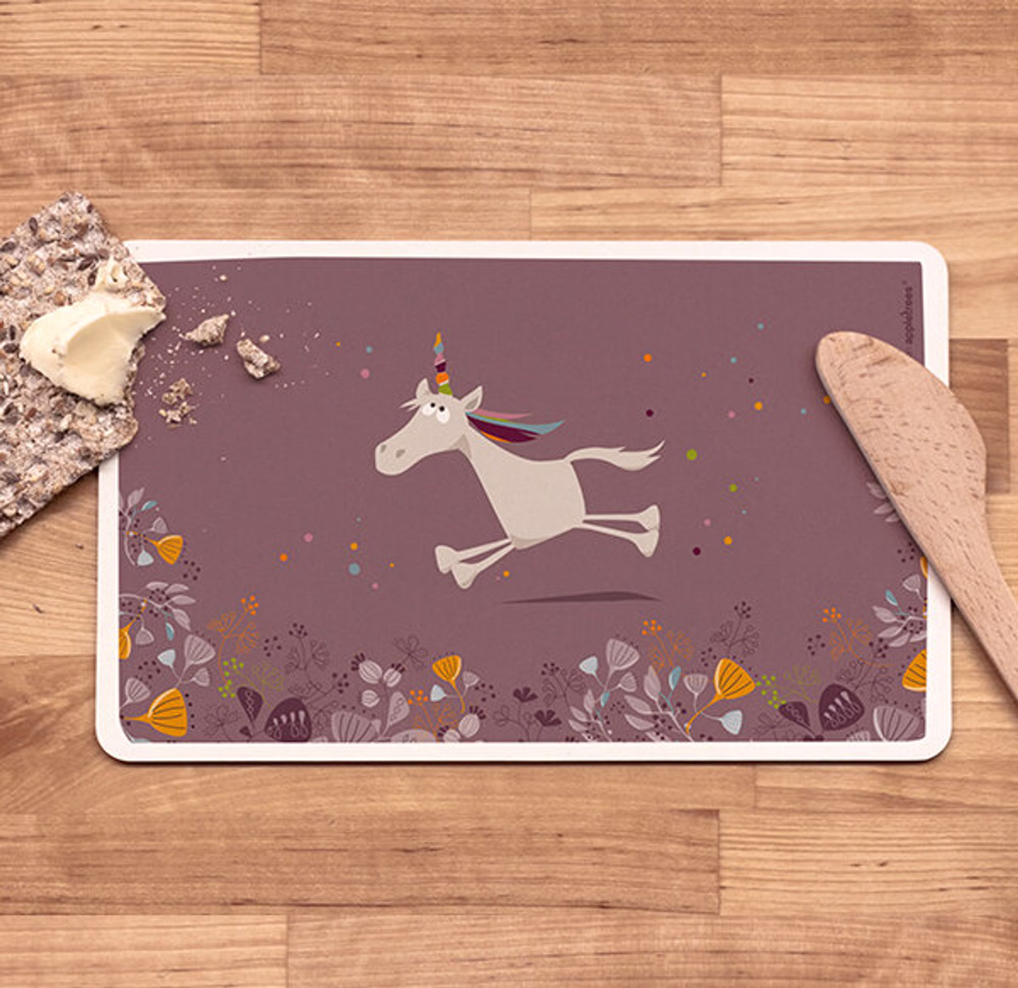 Diese niedlichen Frühstücksbrettchen sind sehr dekorativ und unglaublich praktisch. Sie werden aus robustem Melamin-Schichtstoff hergestellt. Die Brettchen sind weitgehend schnittfest, scharfe Messer können Spuren hinterlassen. Sie sind spülmaschinengeeignet, hitzebeständig bis 150°C und zudem auch abrieb- und säurefest. Produziert werden sie in Deutschland.