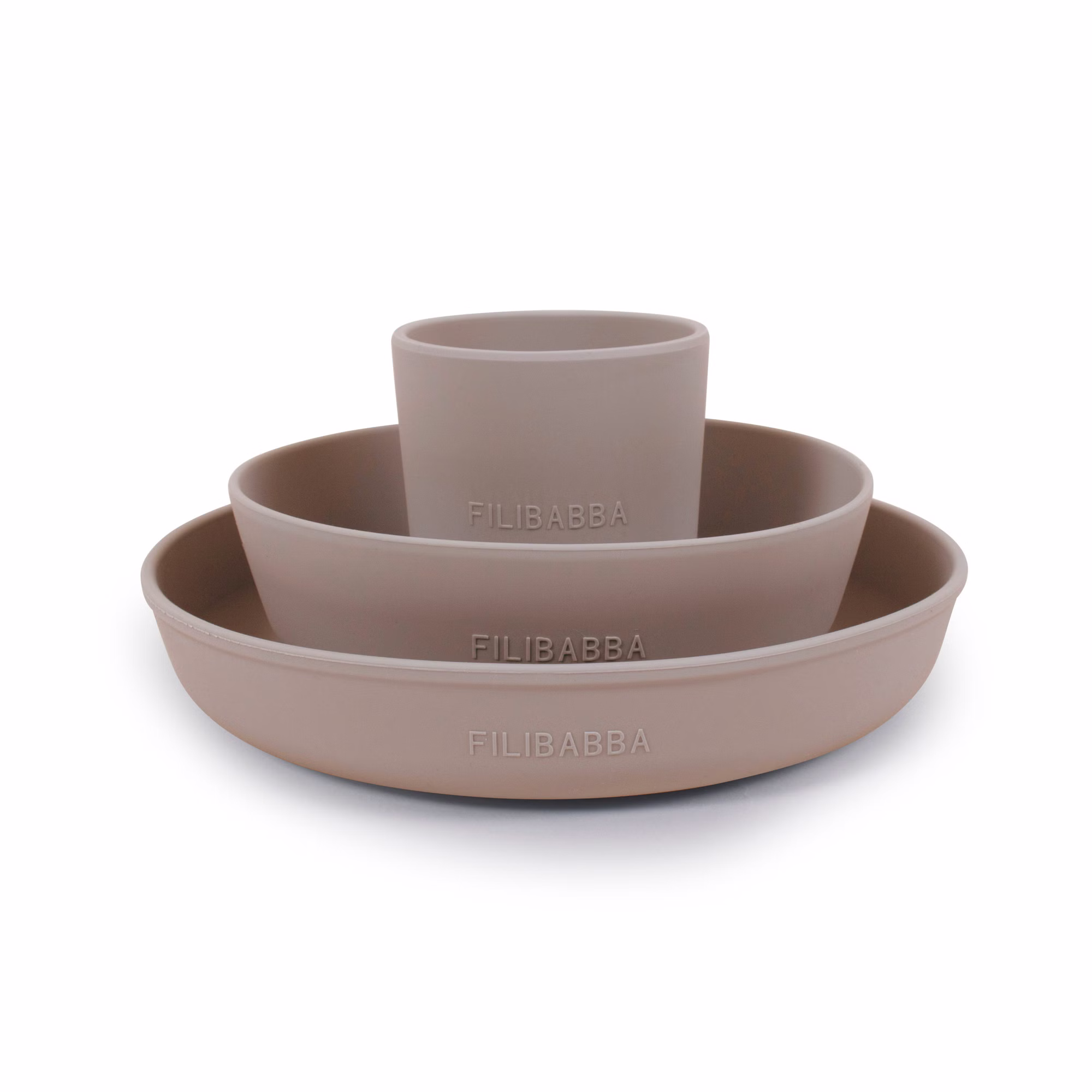 Dieses wunderschöne Silikongeschirrset besteht aus einem Becher, einer Schale und einem Teller. Mit seinen schönen Farben und der minimalistischen Form passt das Geschirrset perfekt zur Familie, die funktionales Design schätzt.