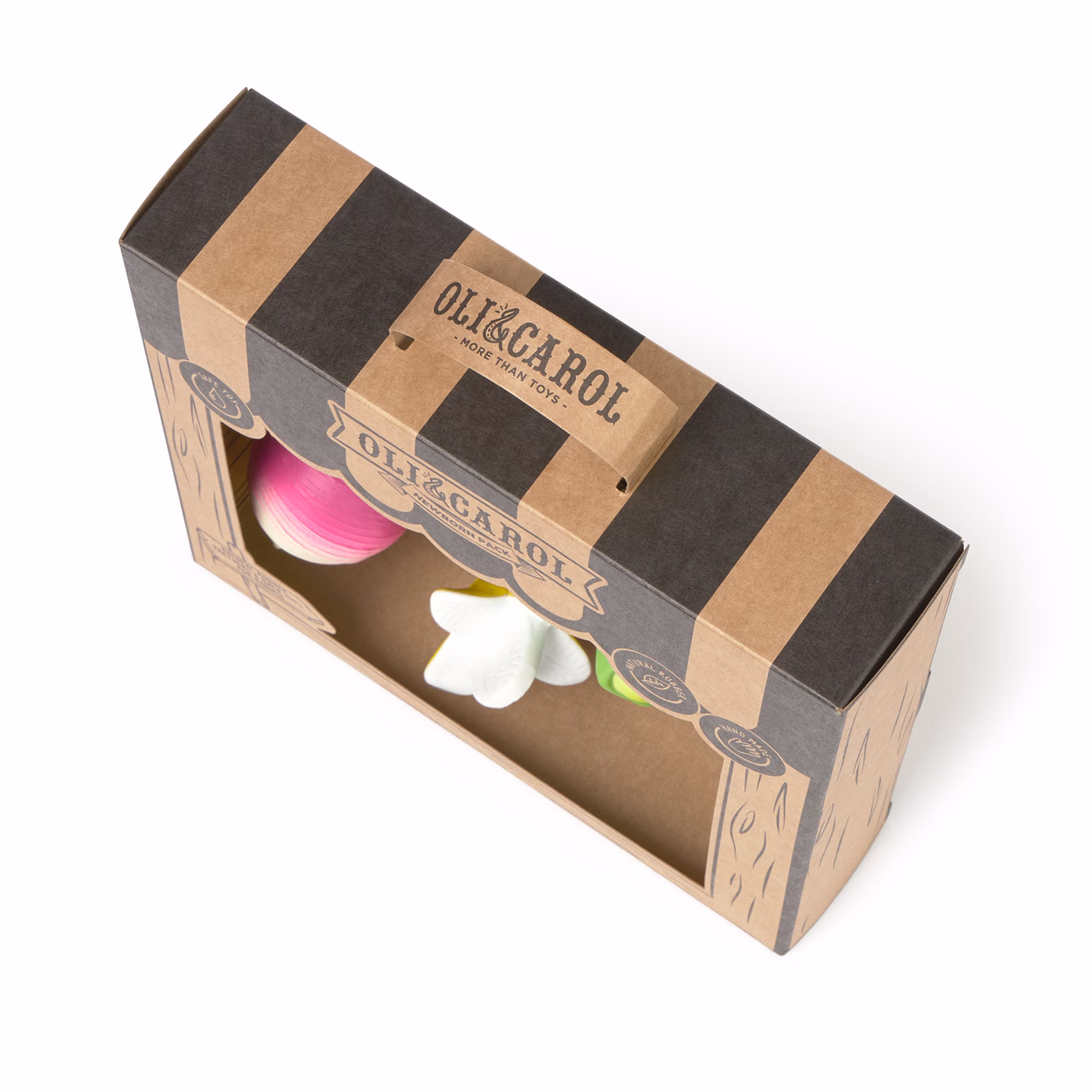 Die Beißringe stimulieren die Sinne des Babys und beruhigen gleichzeitig das Zahnfleisch. Ihre realistischen Texturen entwickeln den Tastsinn der Kinder. Sie werden mit viel Liebe zum Detail in einem handwerklichen und nachhaltigen Verfahren aus 100 % natürlichem Kautschuk des Hevea-Baumes hergestellt. Außerdem werden die Beißringe aus einem Stück gefertigt und haben kein Loch, damit sich im Inneren keine Bakterien bilden können.