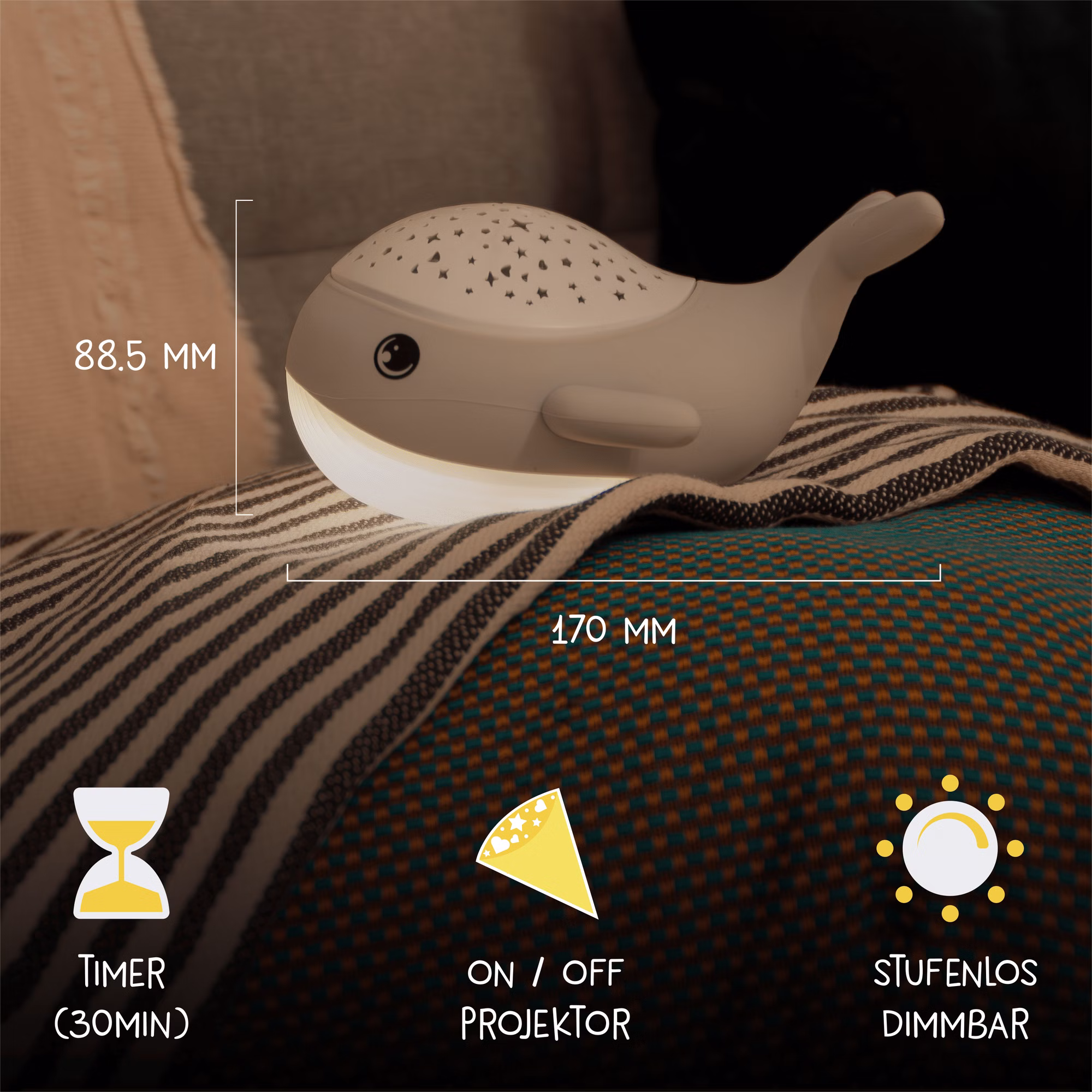 Erleben Sie mit dem Nachtlicht „WILLY WHALE“ ein einzigartiges Einschlafritual für Ihre Kinder.