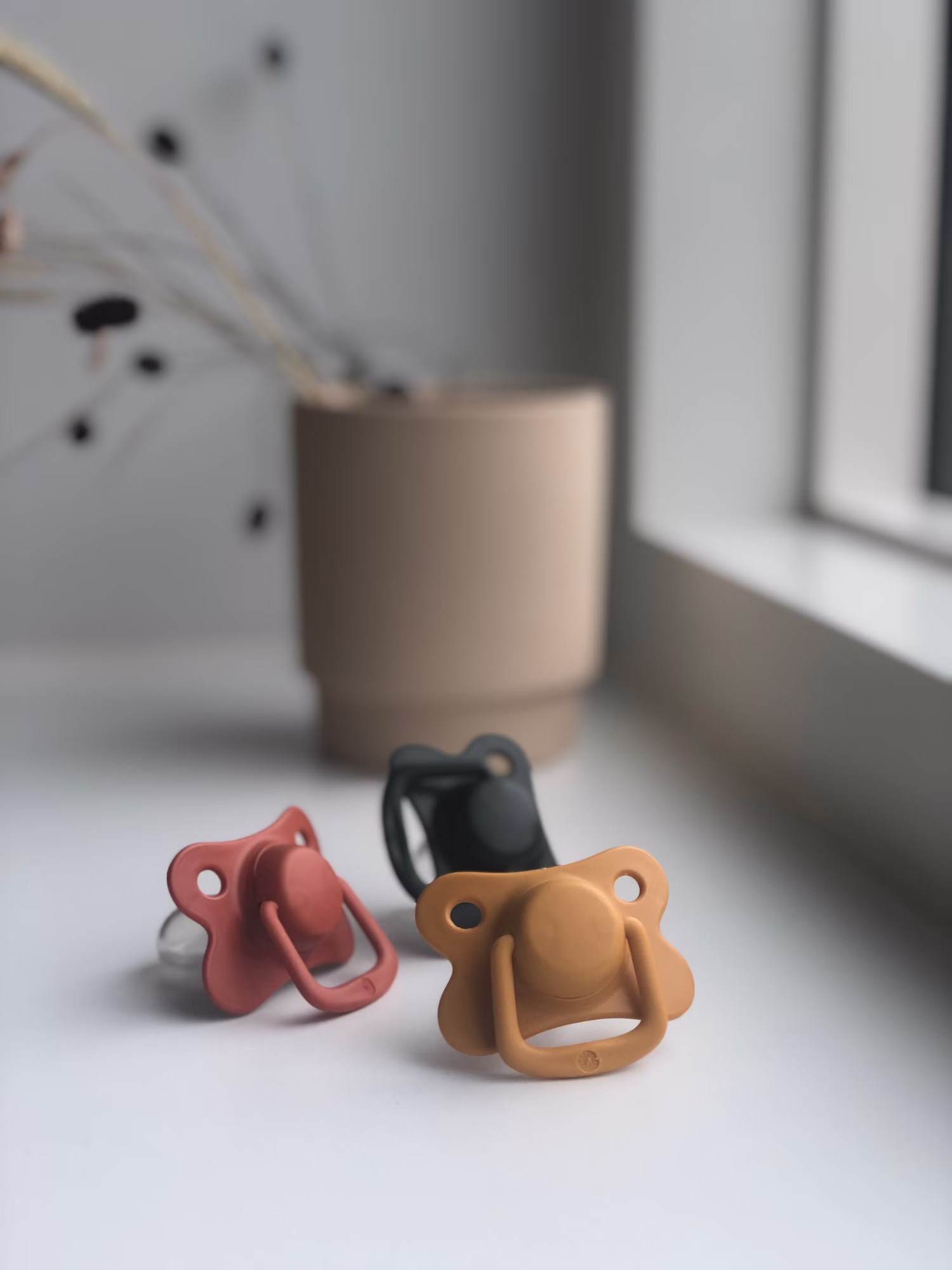 Nordisches Design und wundervolle Farben. 2er-Pack mit feinen Schnullern, hergestellt mit symmetrischem Schnullerkopf aus weichem und haltbarem, klarem Silikon. Das Schnullerschild des Schnullers hat oben eine gebogene Form, die viel Platz für die Nasenspitze des Babys bietet. Die Belüftungslöcher sorgen für Luft um den Mund des Babys.