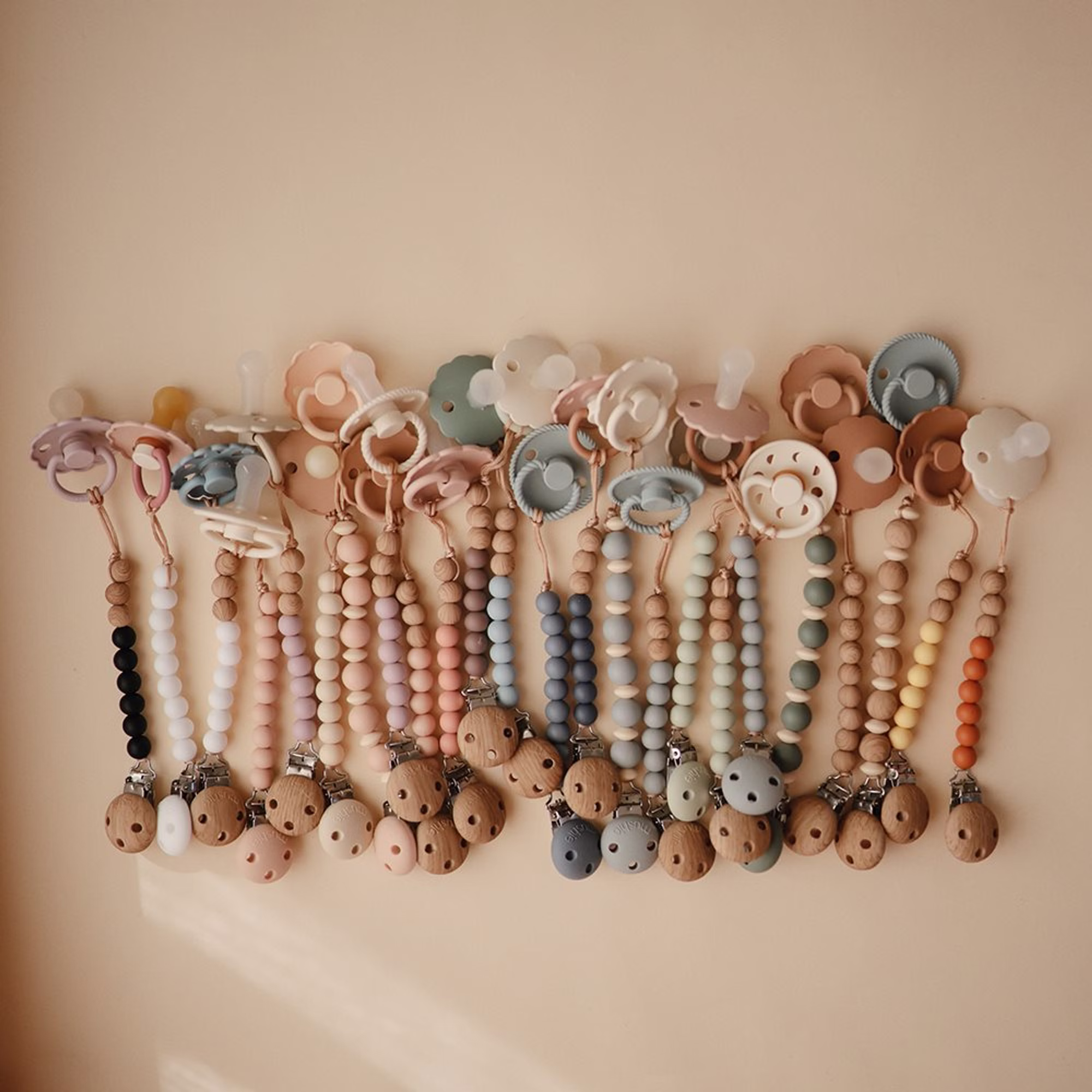 Die Schnullerkette ist leicht zu reinigen und hilft, beruhigende Gegenstände wie Schnuller in Reichweite der Kleinen zu halten.