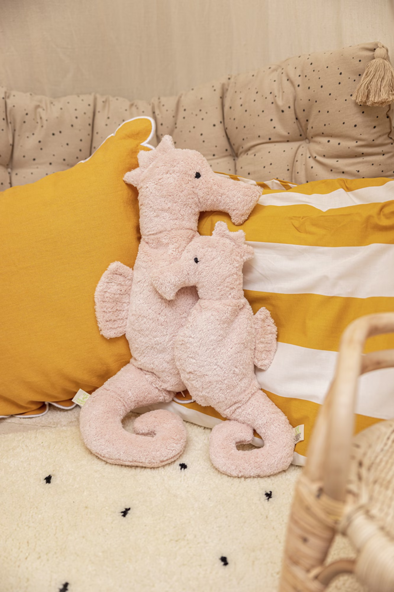 Das große Kuscheltiere Seepferdchen ist ein ganz besonderes handgefertigtes ökologisches Spielzeug.