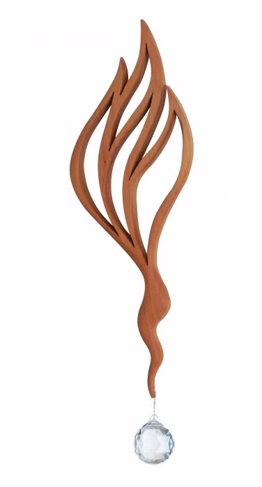 Dieser wunderschöne Fenster- und Zimmerschmuck aus Birnbaumholz zaubert durch die Bewegung und Lichtbrechung am Swarovski-Kristall immer wieder wechselnde Regenbogenfarben in den Raum.