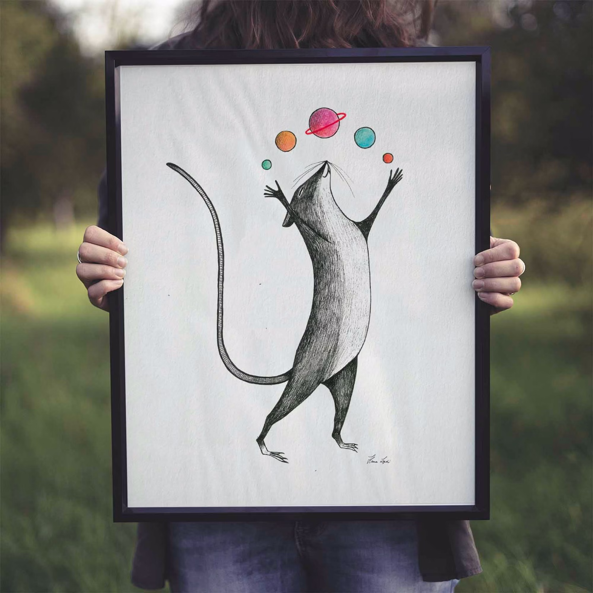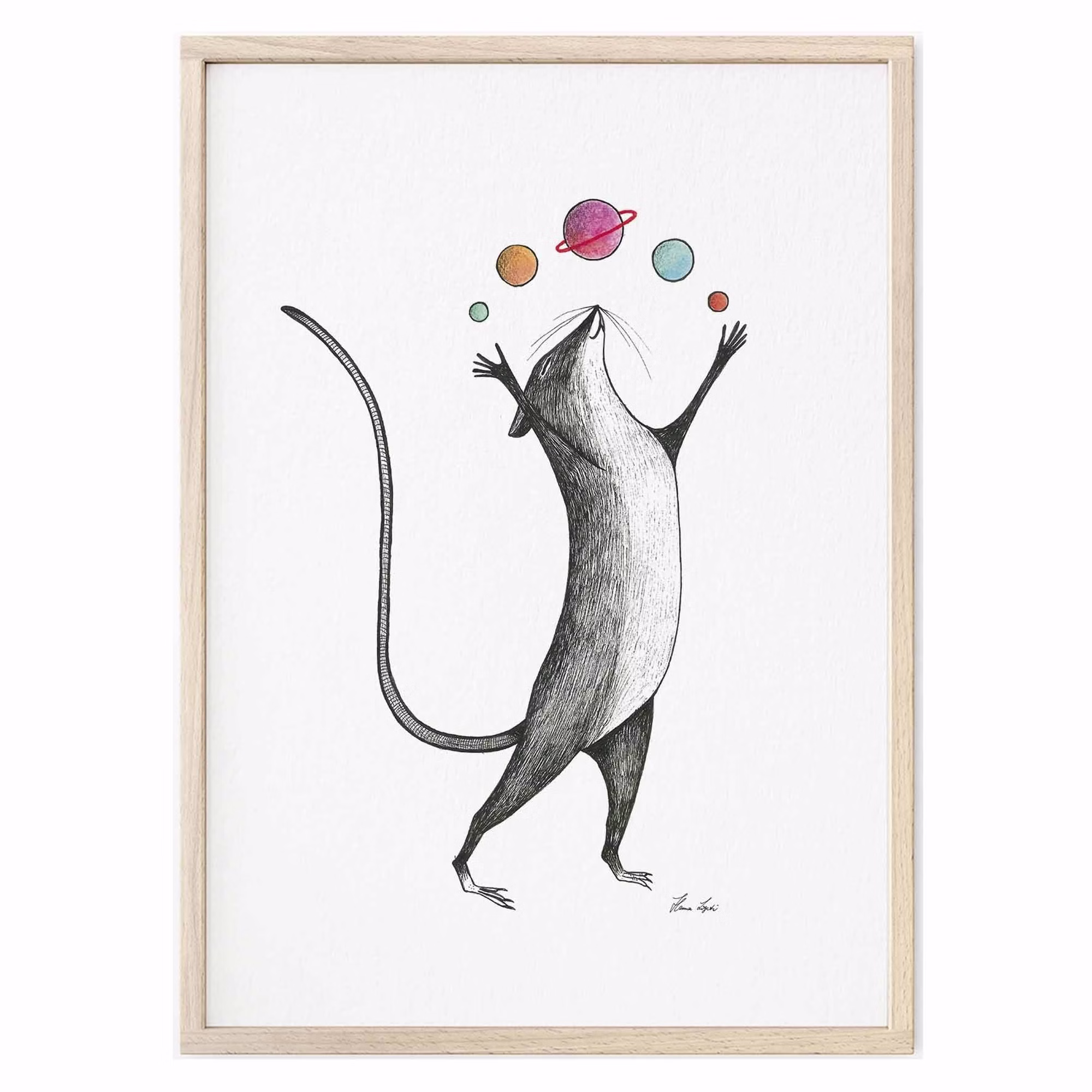 Ein wunderschöner Kunstdruck, der nicht nur im Kinderzimmer bezaubert. Gedruckt auf hochwertigem Fine Art Papier kommt die Planetenmaus perfekt zur Geltung.