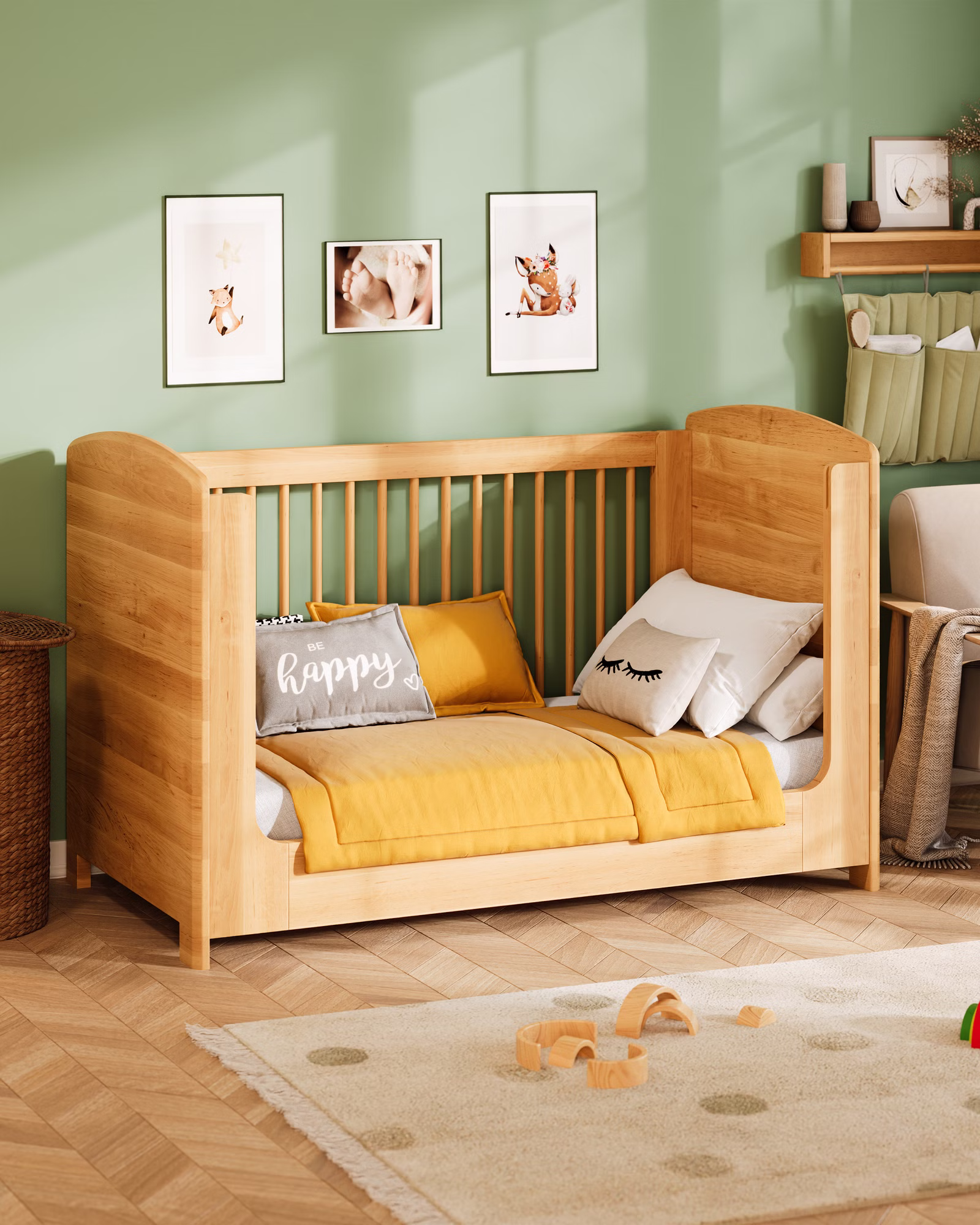 Unser Marlon Babybett ist etwas ganz besonderes. Es ist völlig metallfrei, was für einen ungestörten Schlaf sorgt und besonders schonend für den Organismus ist. Die acht robusten Massivholz Teile des Babybetts lassen sich in kurzer Zeit und ganz ohne Werkzeug zusammenbauen. Die Seitenteile sind leicht ab- und wieder anmontiert. Das macht das Babybett besonders variabel.