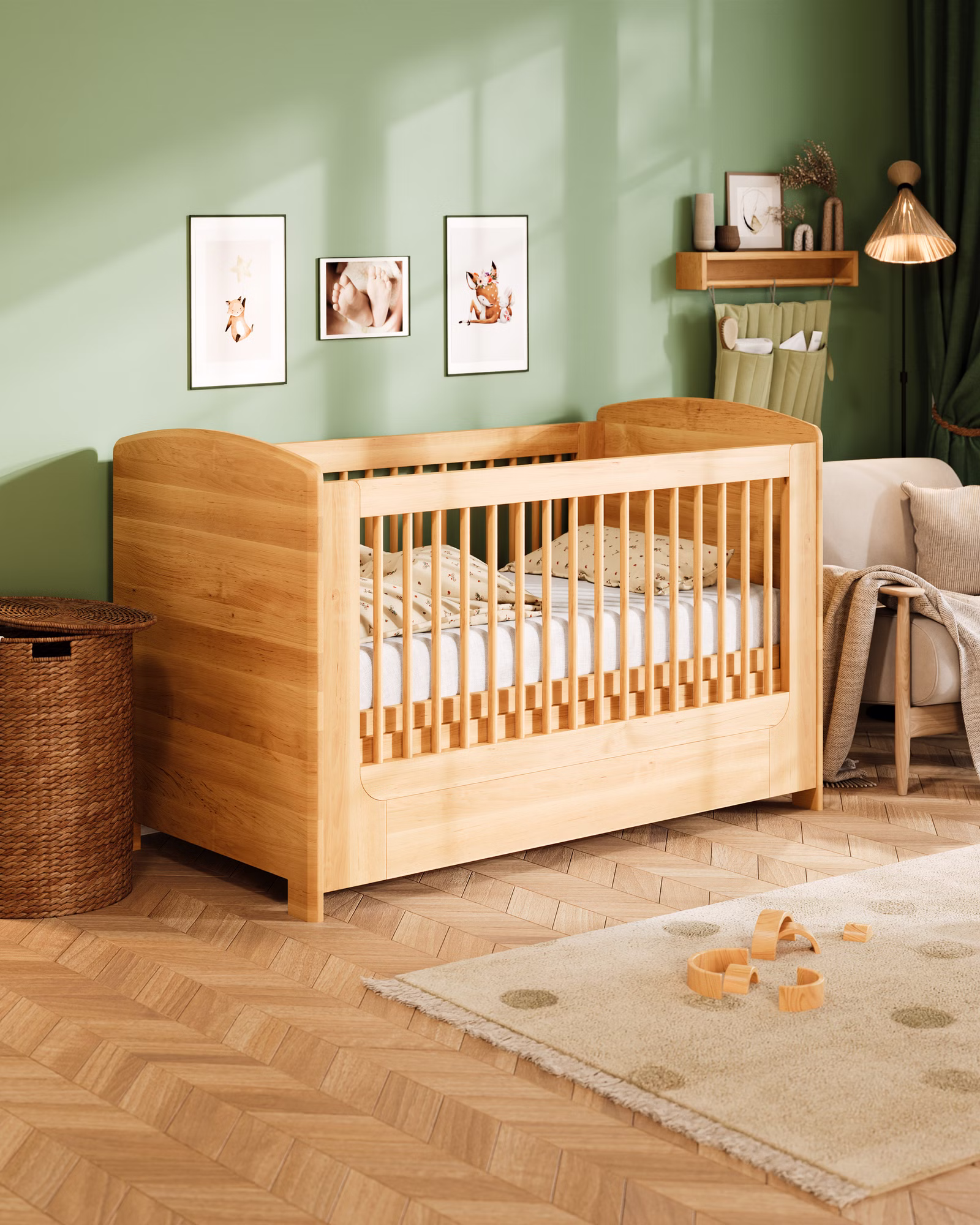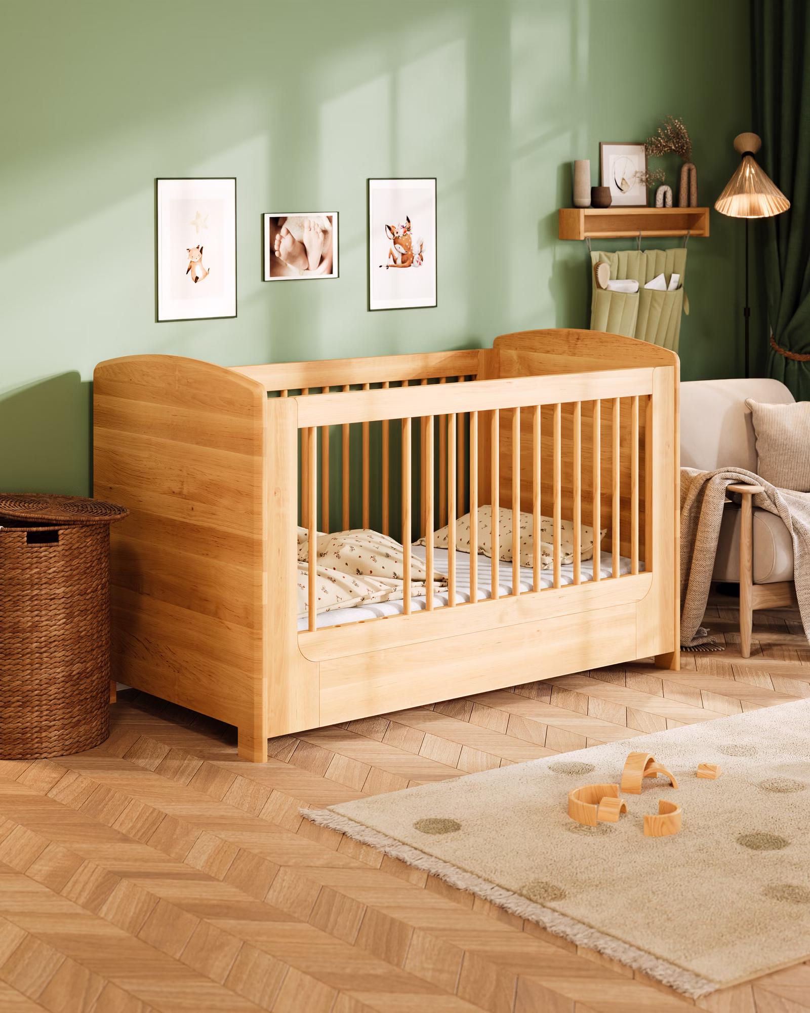 Jedes Marlon Babybett wird bei der Herstellung sorgfältig von Hand bearbeitet und so zu einem Unikat. Somit erhalten Sie ein einzigartiges Premium Gitterbett.