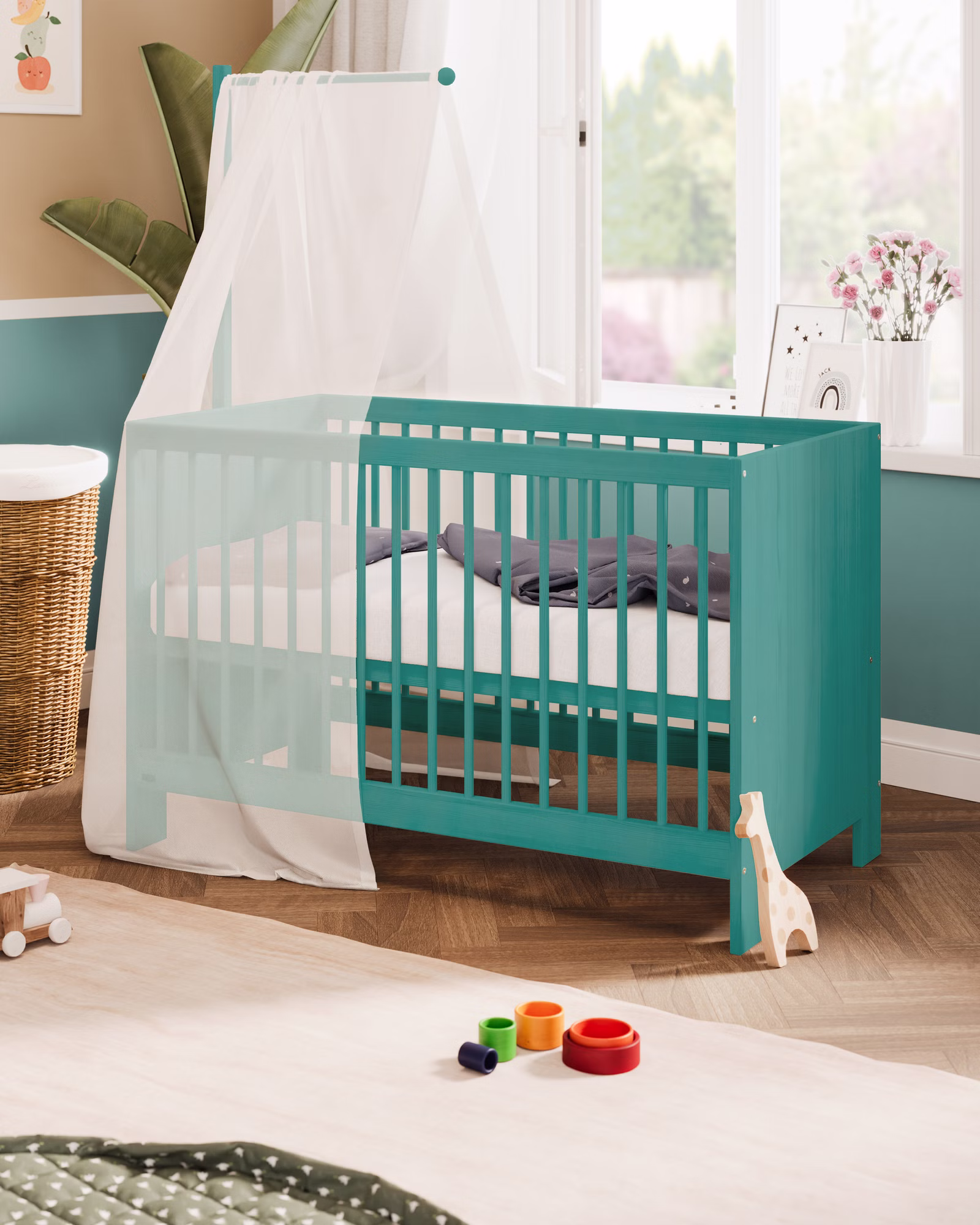 - Mitwachsend zum offenen Kinderbett durch Entfernen einer Gitterbettseite