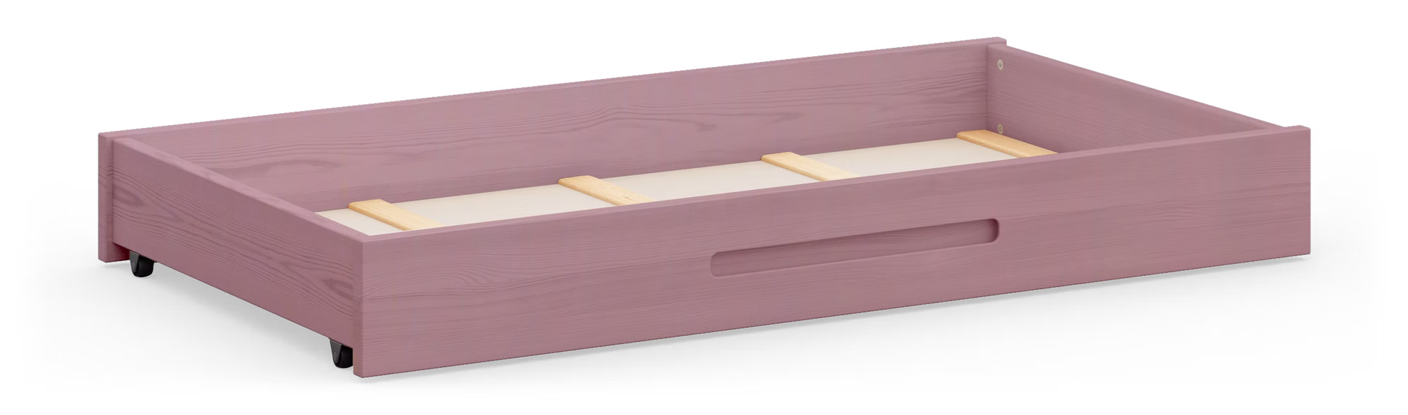 Praktischer Bettkasten auf Rollen zum platzsparenden Verstauen von z. B. Decken und Bettwäsche.