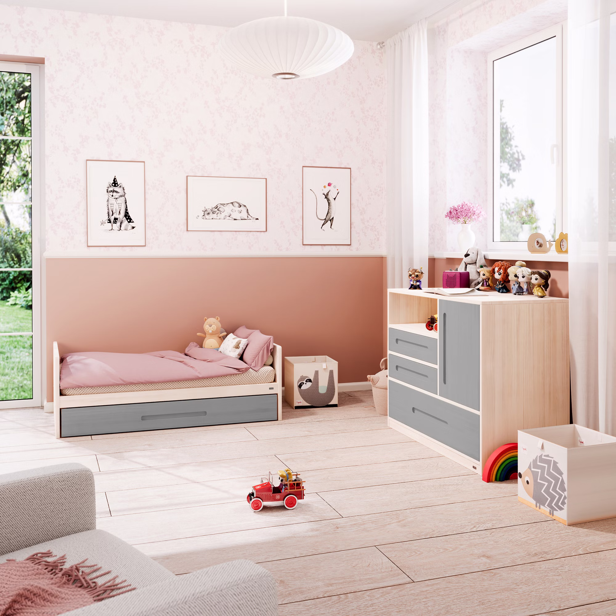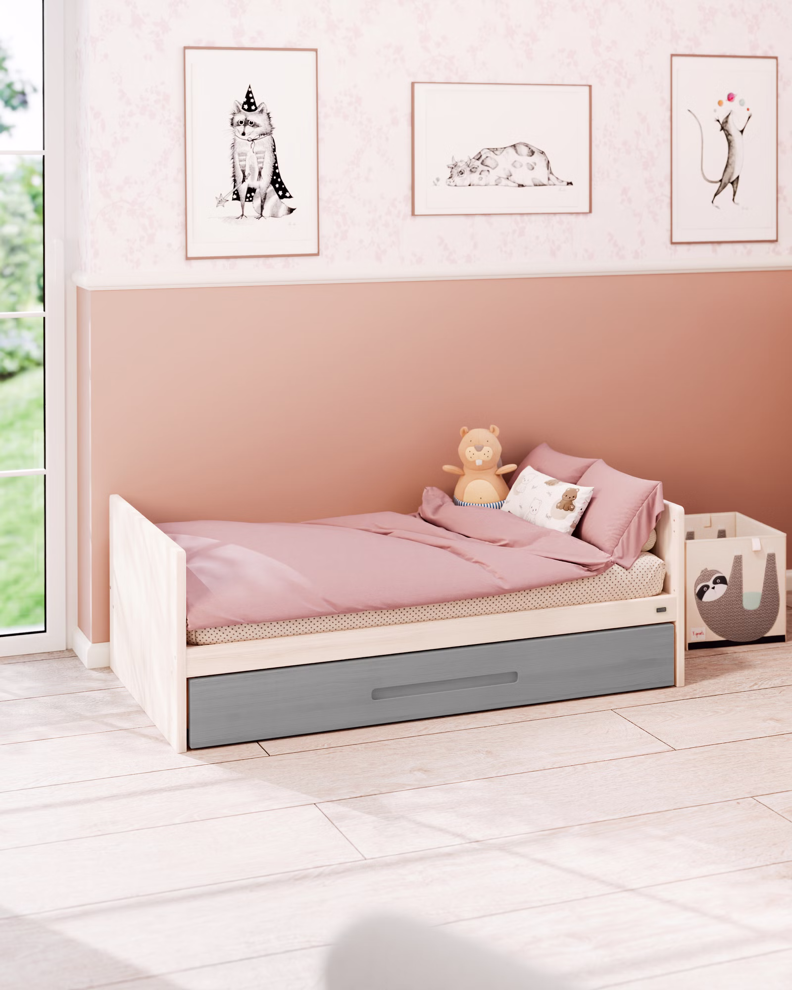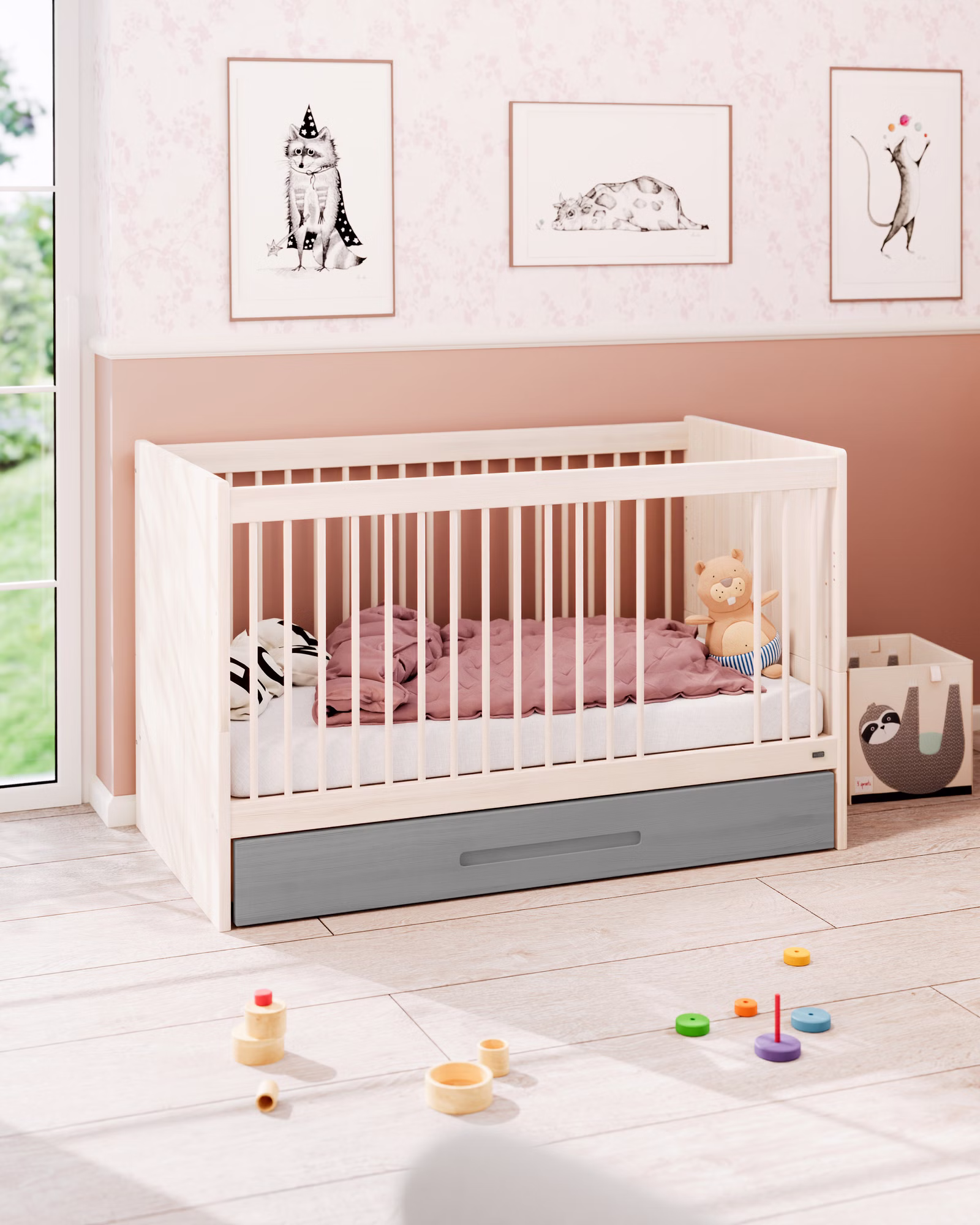 - Umbaumöglichkeit zum vollwertigen Kinderbett dank mitgelieferter Bettseiten. So wächst Lina als nachhaltiges Möbelstück lange mit.