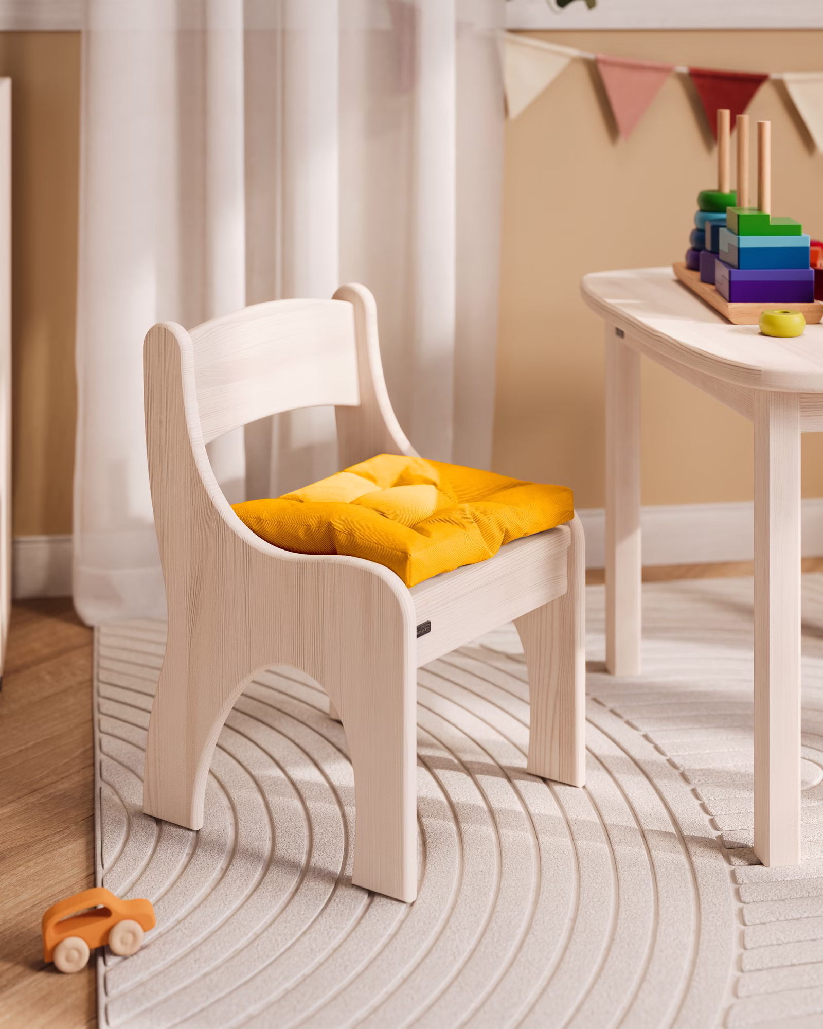 Es eignet sich perfekt als Sitzkissen für unsere Levin Kinderstühle und ergibt zusammen mit diesen eine gemütliche Sitzgelegenheit für die Kleinen.