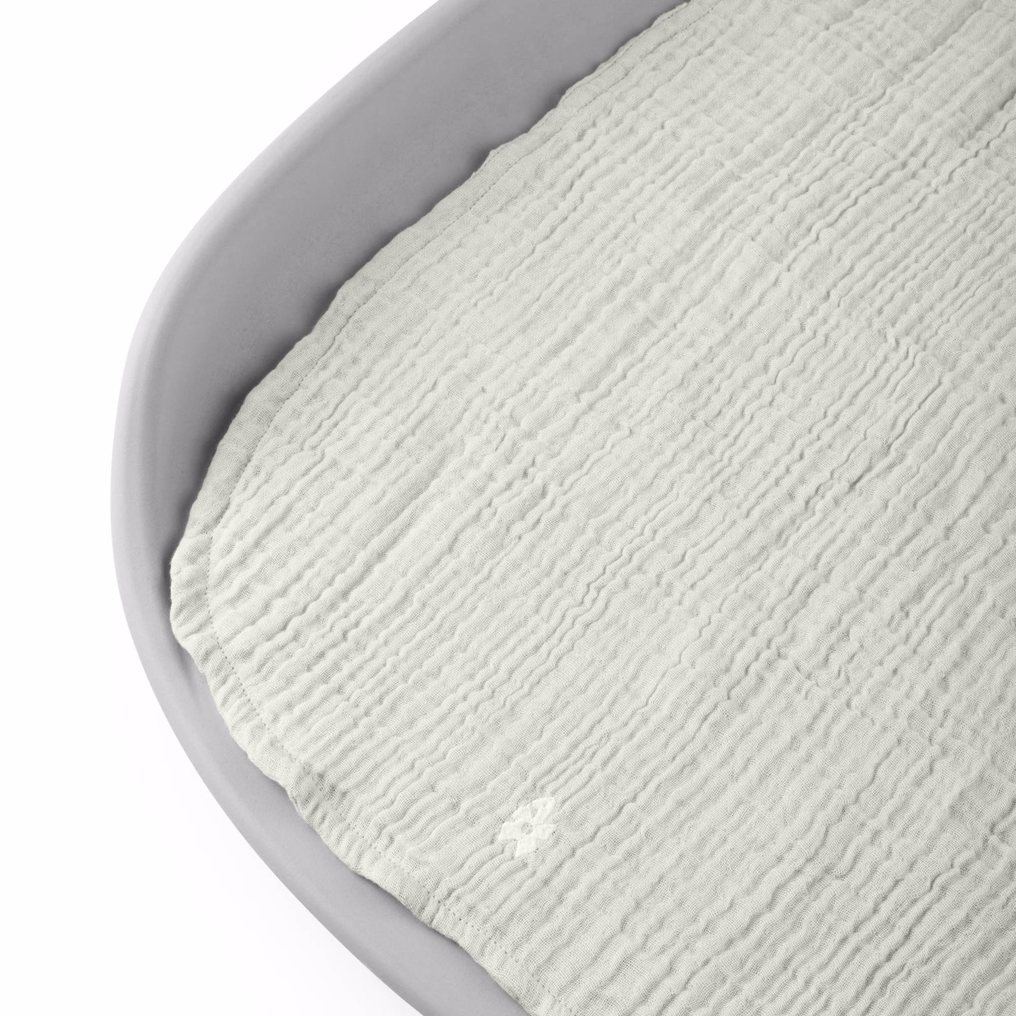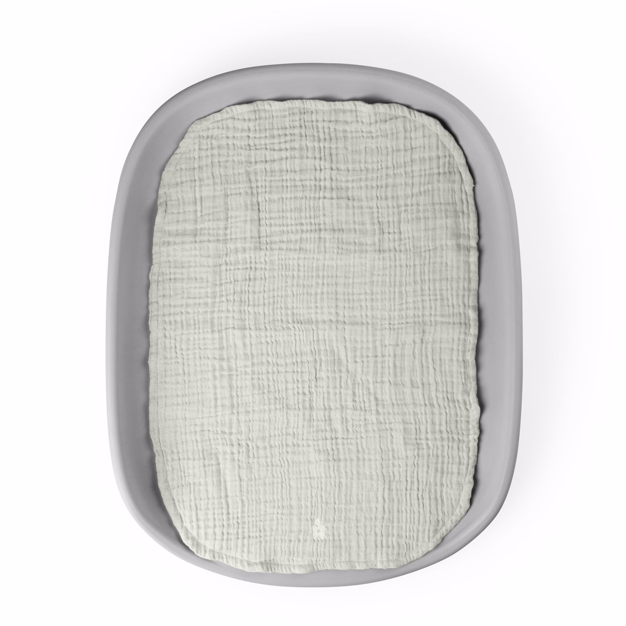 Die Wickelunterlage besteht aus sechs Lagen Musselin und dient dem Kind als weiche und bequeme Liegefläche, wenn es Zeit für den Windelwechsel ist.