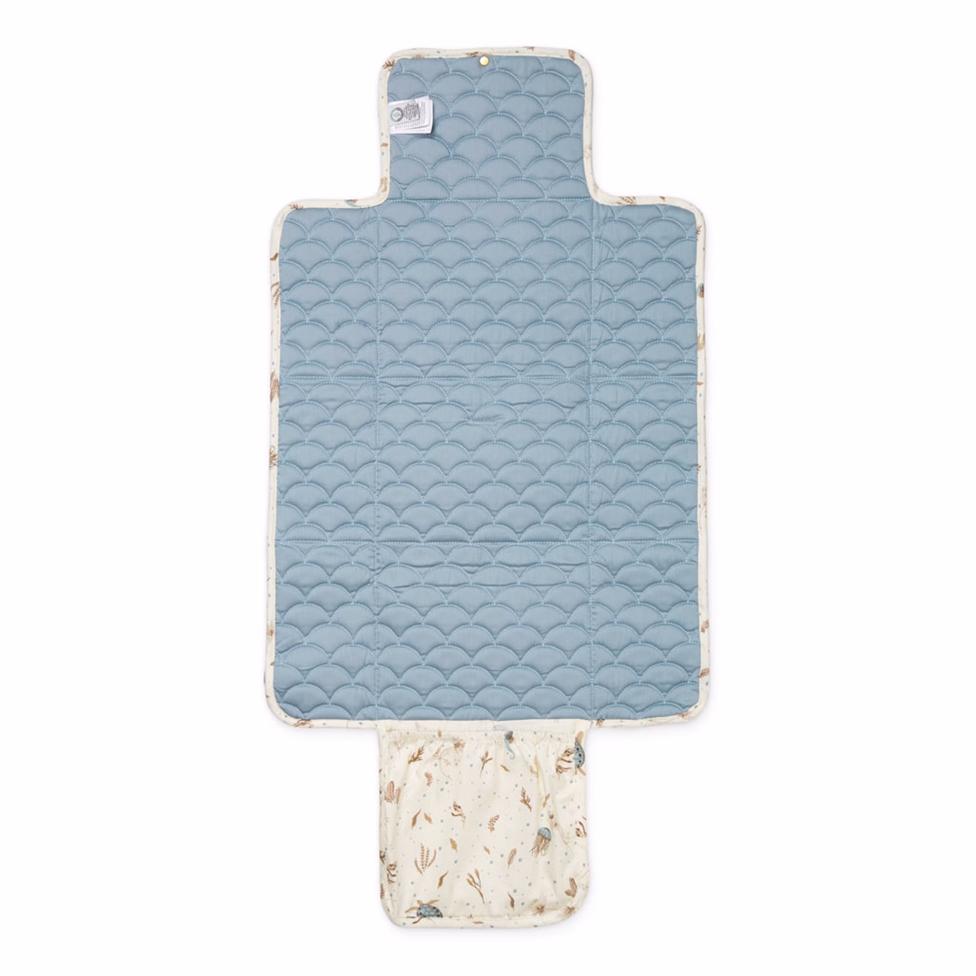 Diese hübsche und praktische Wickelunterlage mit schönem, gesticktem Wellenmuster ist perfekt für alle Wickelsituationen unterwegs.