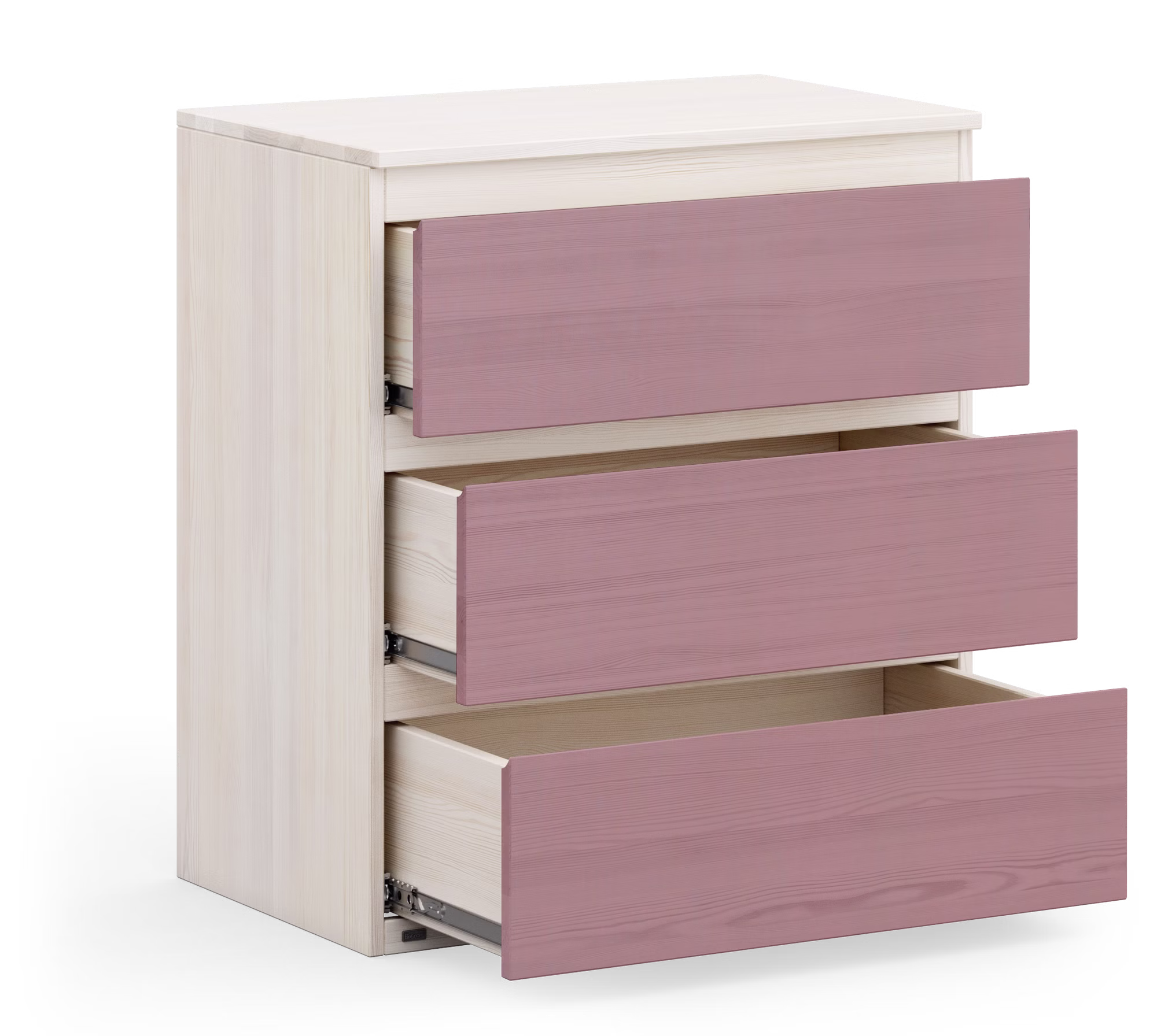 Die drei Schubladen mit kugelgelagerten Leichtlaufschienen und Vollauszug bieten genügend Stauraum und ermöglichen einen Einblick bis in den hintersten Teil der Schublade. Die stabilen Schubladen sind aus ganzen Massivholzplatten und somit bruchsicher.