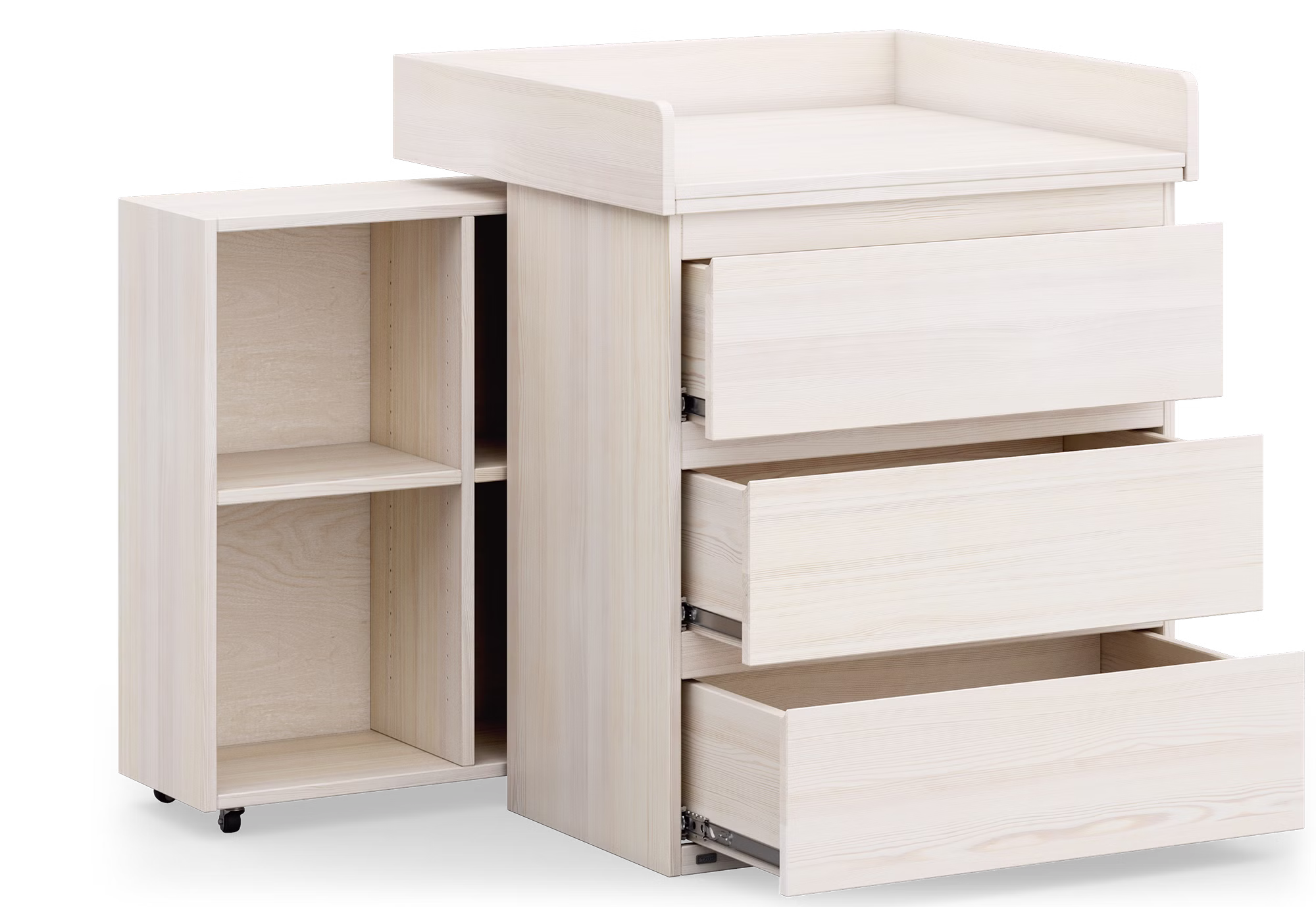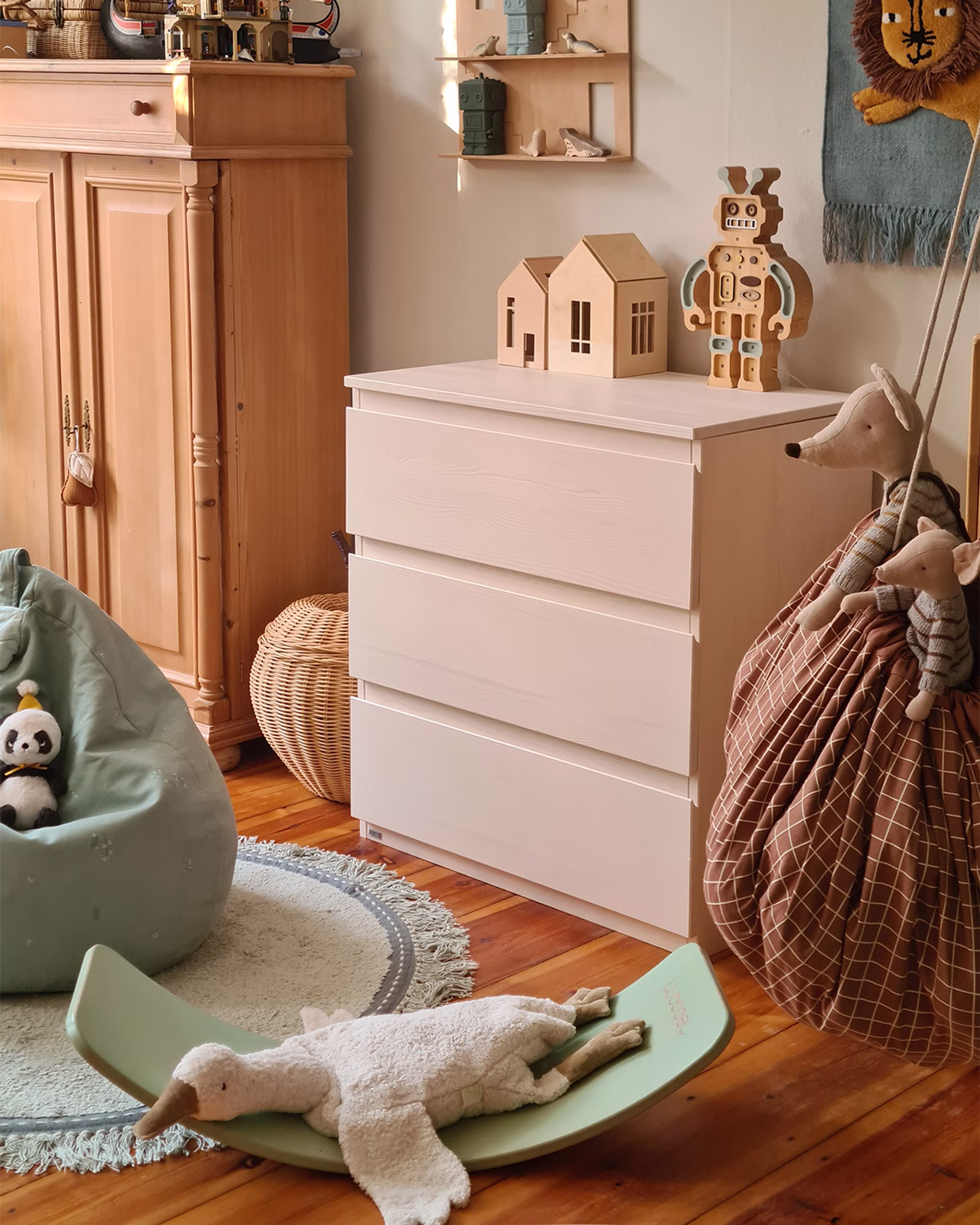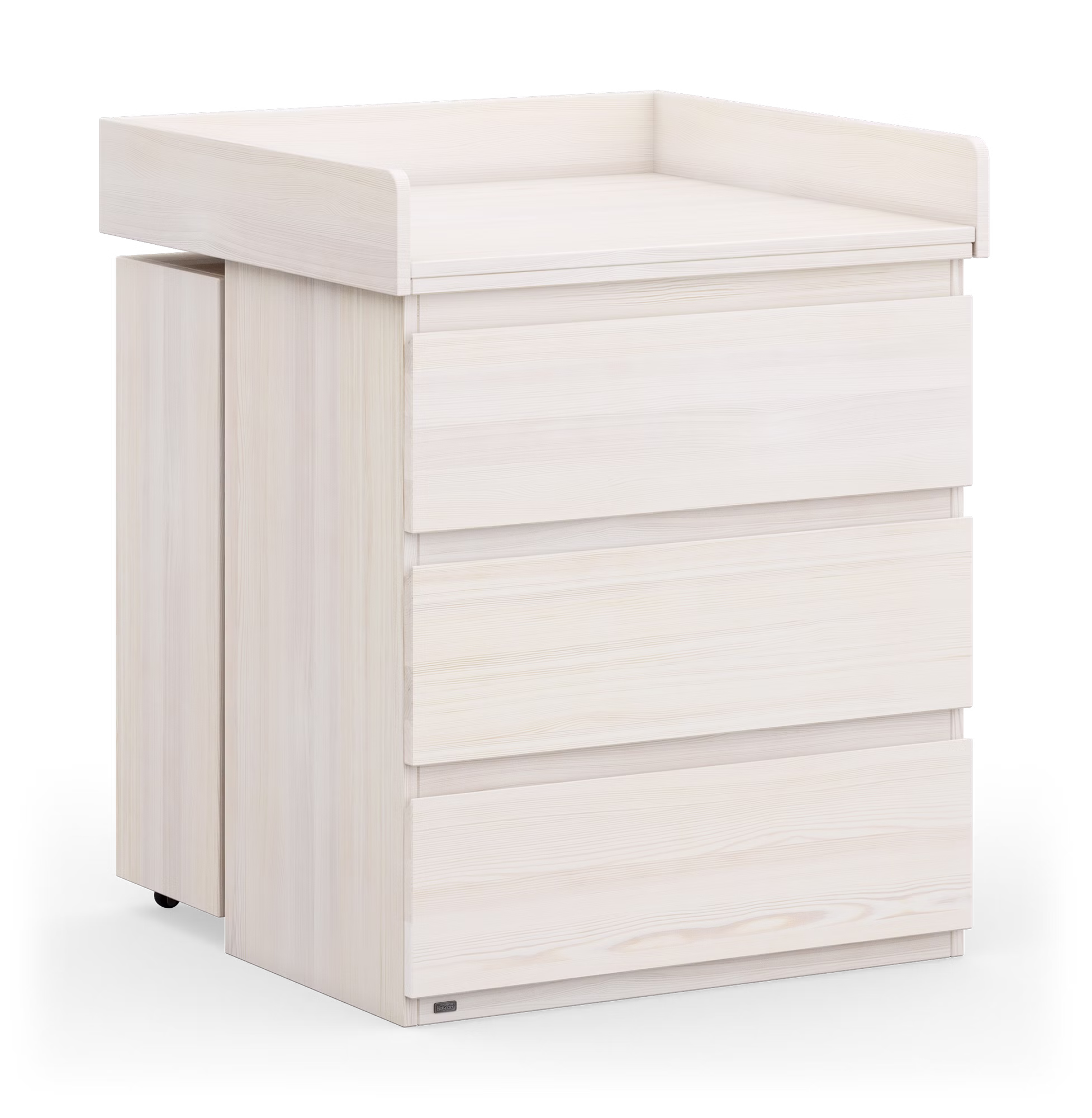 Die Wickelkommode dient zunächst zum Wickeln und kann später mühelos in ein vielseitiges Möbelstück für das Kinderzimmer umgewandelt werden, um Kleidung, Spielzeug und mehr aufzubewahren.