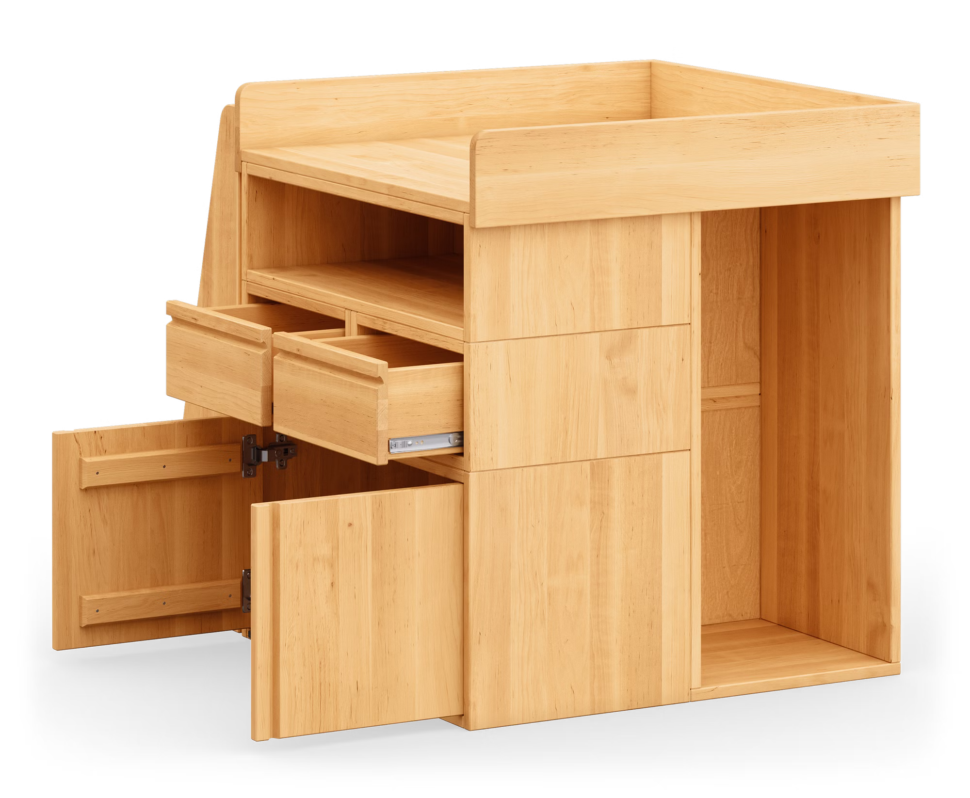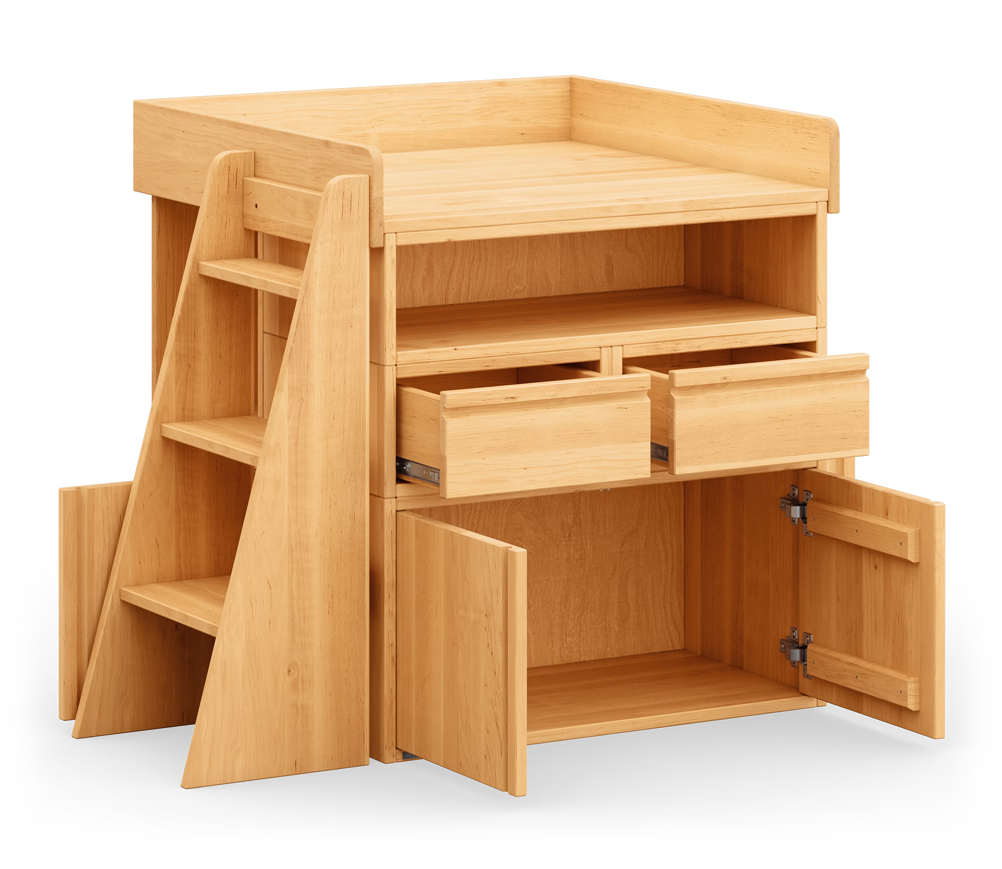 Unser Laura wandelbarer Wickeltisch wird aus Bio-Massivholz gefertigt und ergänzt jedes Zimmer ideal. Die offenen und geschlossenen Laura Regalwürfel lassen sich vielfältig und flexibel miteinander kombinieren und ergeben so individuell gestaltete Regale, Kommoden und Raumteiler, die auch ideal in Dachschrägen passen.