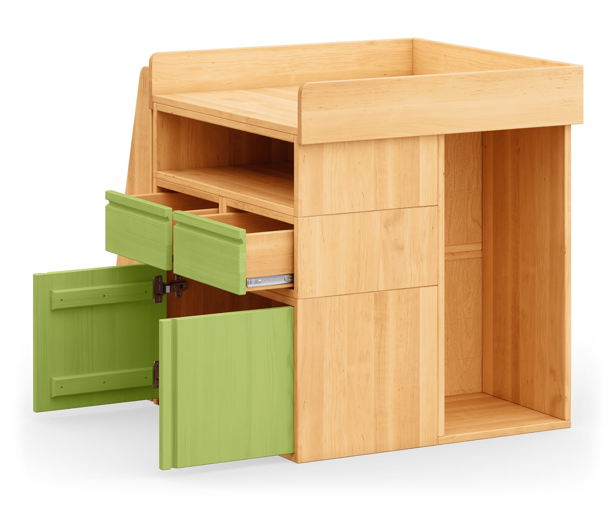 Unser Laura wandelbarer Wickeltisch wird aus Bio-Massivholz gefertigt und ergänzt jedes Zimmer ideal. Die offenen und geschlossenen Laura Regalwürfel lassen sich vielfältig und flexibel miteinander kombinieren und ergeben so individuell gestaltete Regale, Kommoden und Raumteiler, die auch ideal in Dachschrägen passen.