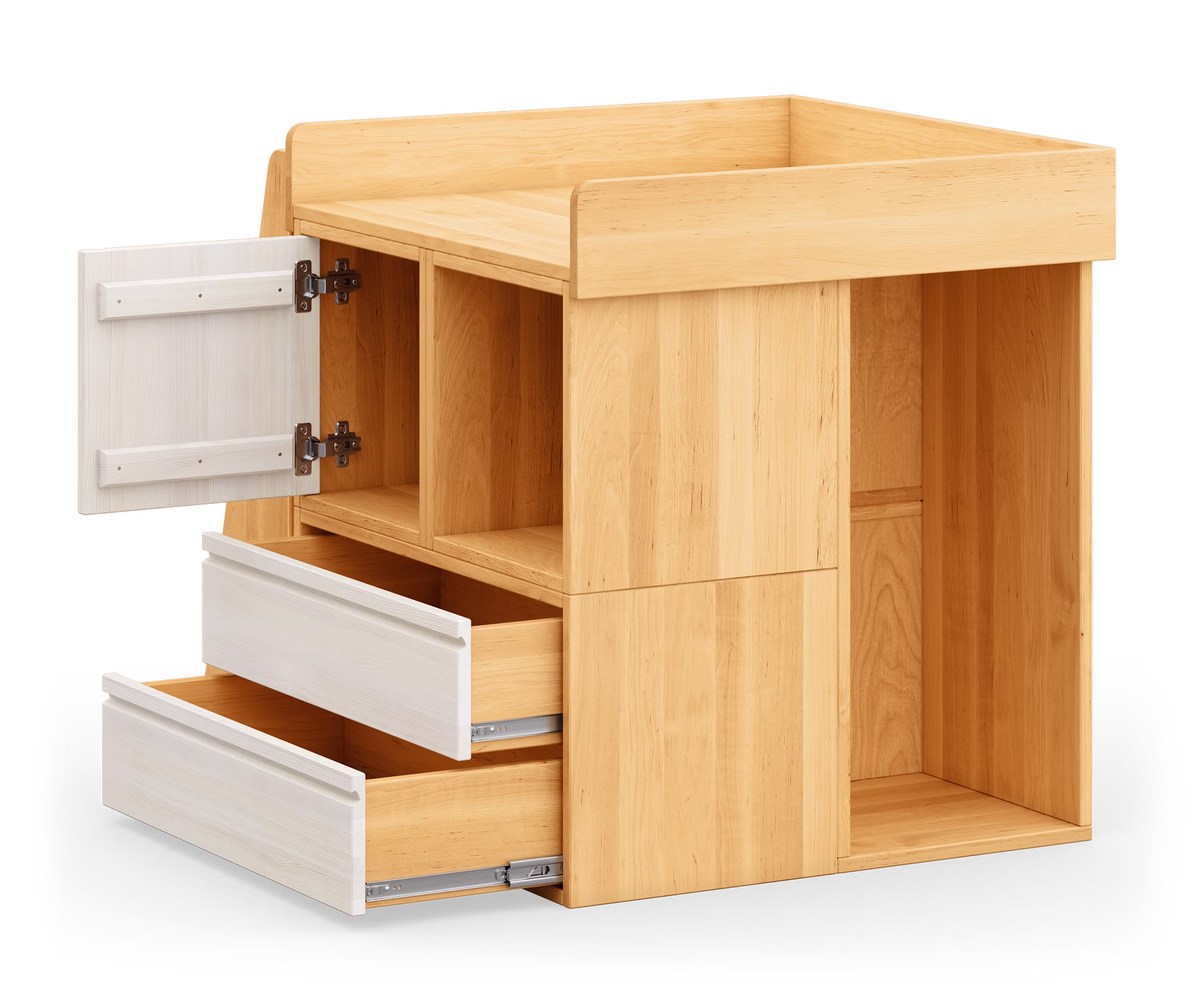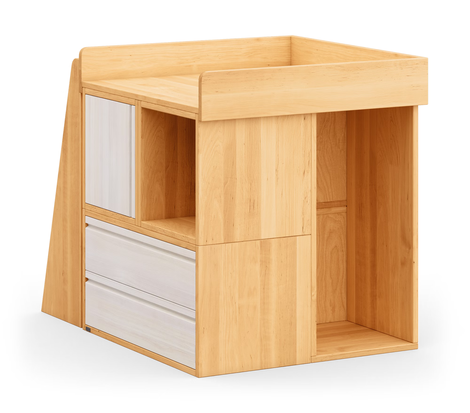 Unser Laura wandelbarer Wickeltisch wird aus Bio-Massivholz gefertigt und ergänzt jedes Zimmer ideal. Die einzelnen Laura Regalwürfel lassen sich vielfältig und flexibel miteinander kombinieren und ergeben so individuell gestaltete Regale, Kommoden und Raumteiler, die auch ideal in Dachschrägen passen.