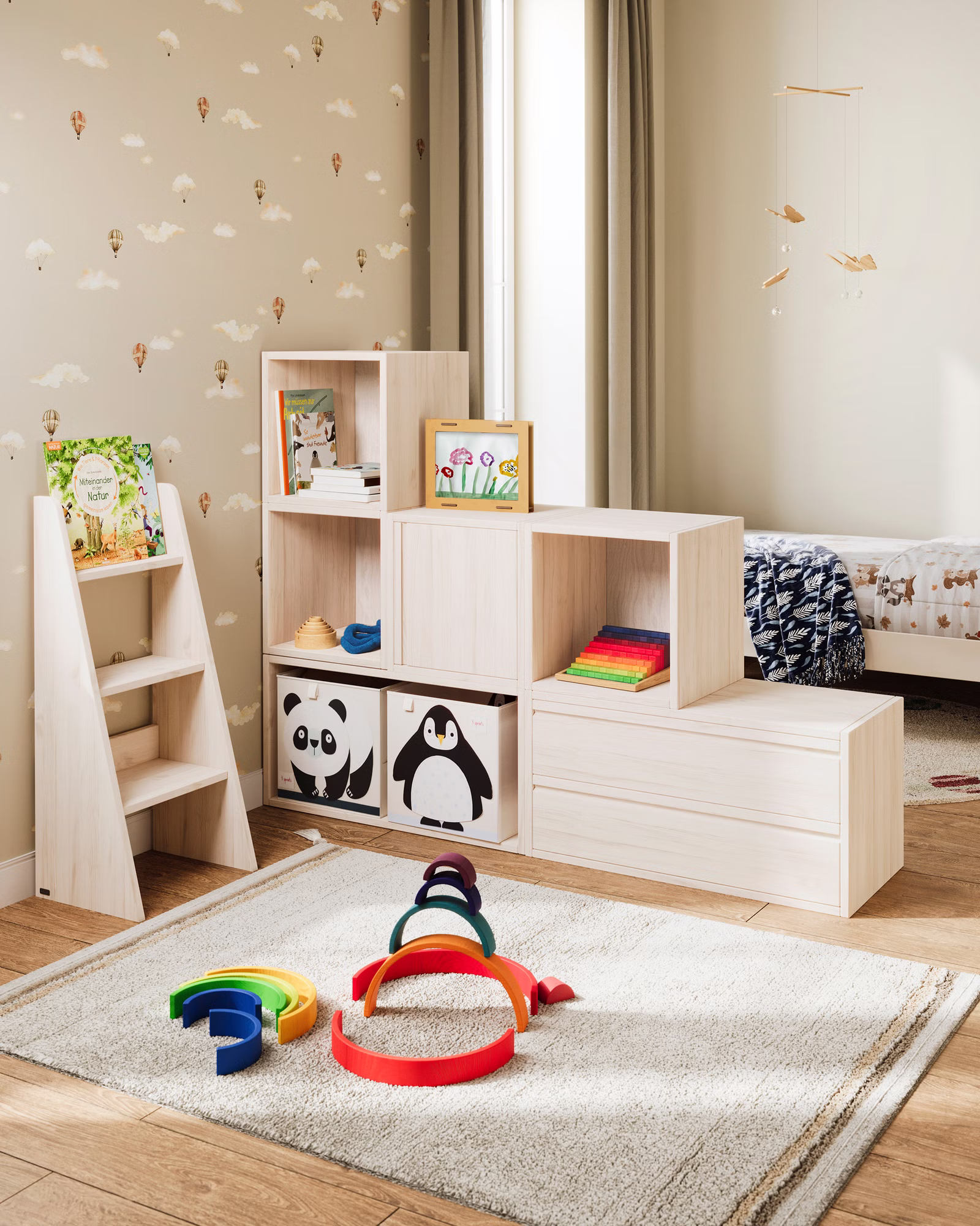 Später verwandeln sich die einzelnen Laura Regalwürfel leicht in individuelle und flexible Bücherregale, Raumteiler oder Kommoden und wachsen so lange mit.