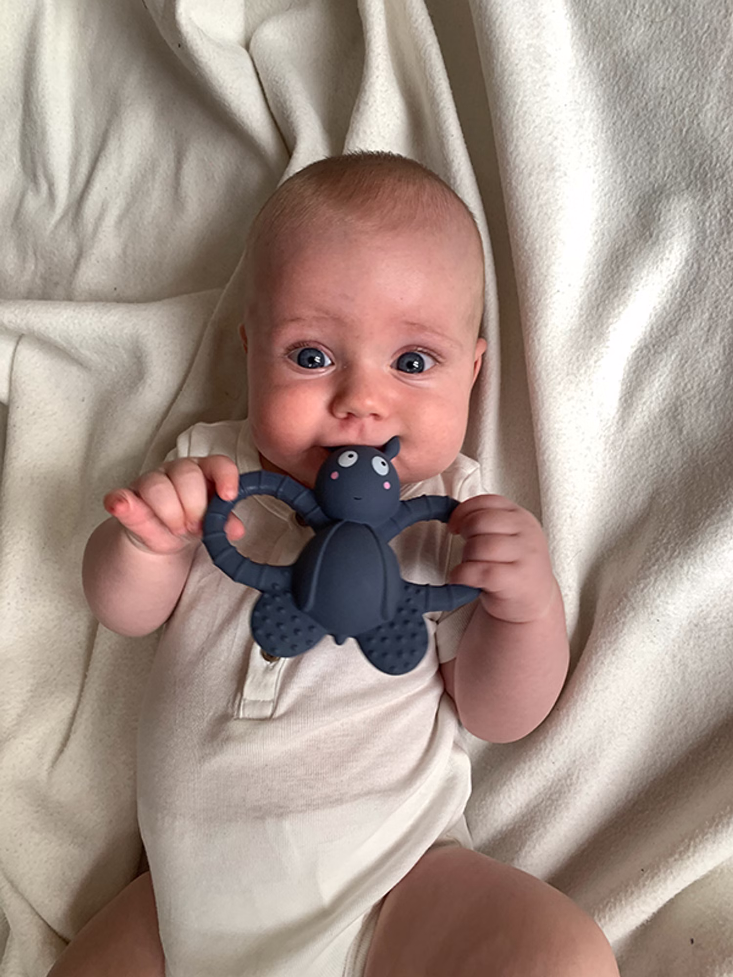 Die Beißtiere von Filibabba sind ideal geeignet um die Motorik der Neugeborenen spielerisch zu trainieren. Durch die Flügel ist es auch für ein Baby leicht, das Tierchen zu greifen. Des Weiteren hilft das Tier bei Zahnungsbeschwerden durch Massage des Zahnfleischs. Da die Tiere handgefertigt sind, kann der Ausdruck leicht von der Abbildung abweichen.