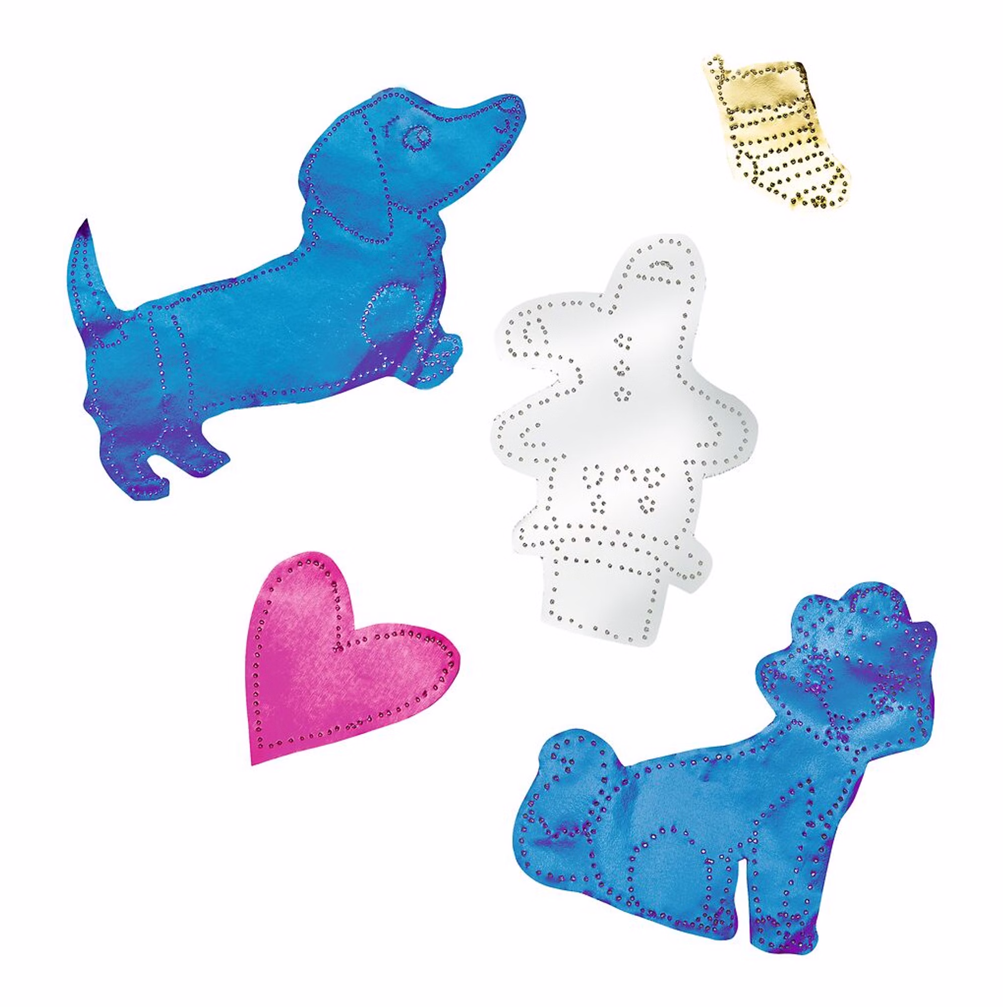 Schneemann, Tannenbaum oder Glöckchen – mit dem Prickel-Set entstehen stimmungsvolle Motive, die sich in funkelnde Girlanden verwandeln lassen. Einfach die Vorlage auflegen, mit der Nadel ausprickeln und mit Metallic-Papier hinterlegen: Schon wird aus einer einfachen Kontur ein leuchtendes Kunstwerk für die Adventszeit.