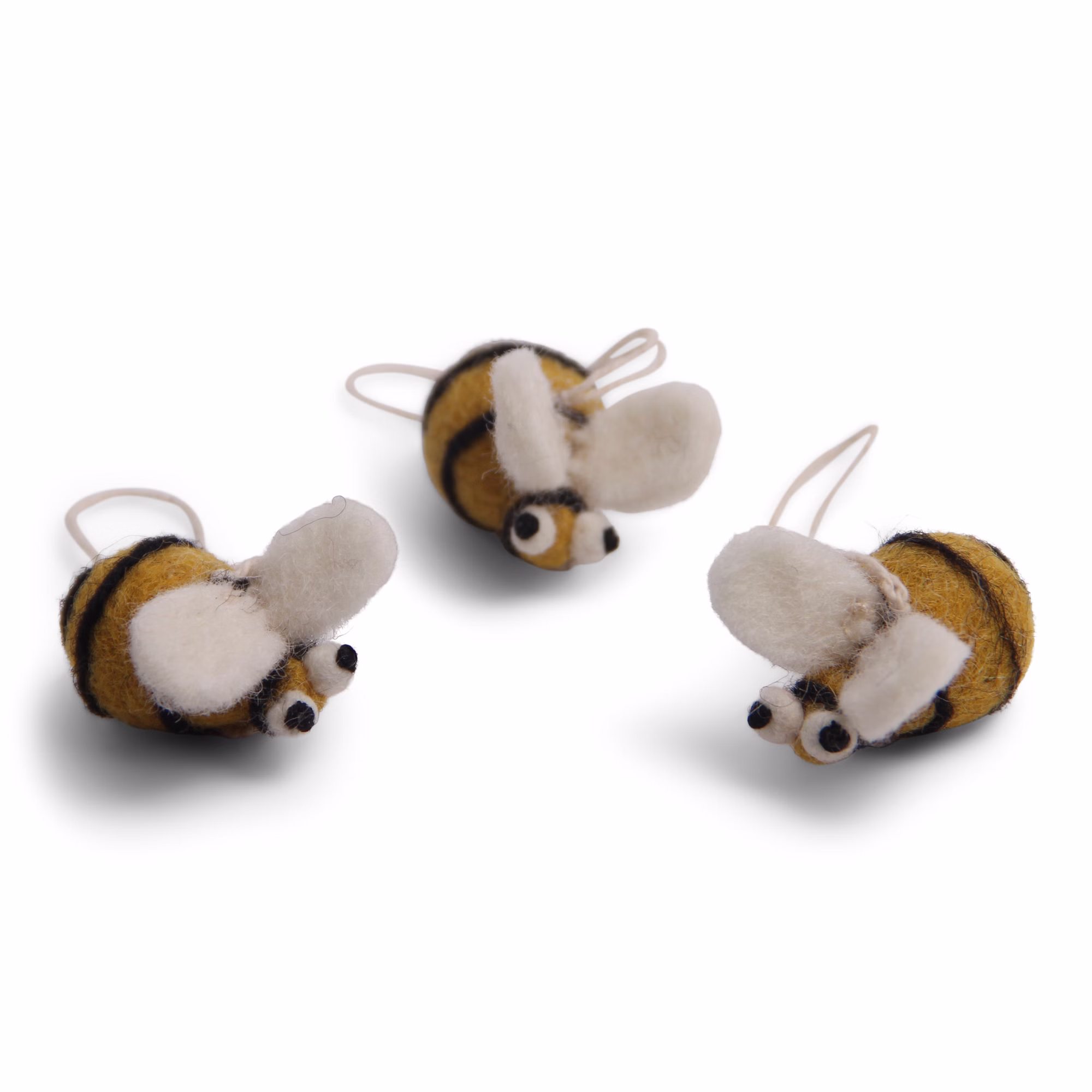 Diese Bienen sind die perfekte Dekoration zu Ostern. Die schöne Farbe macht die Bienchen zu einem Hingucker am Kranz oder Osterbäumchen, die gute Laune und Frühlingsgefühle versprühen. Sie sind in liebevoller Handarbeit aus reiner Naturwolle hergestellt.