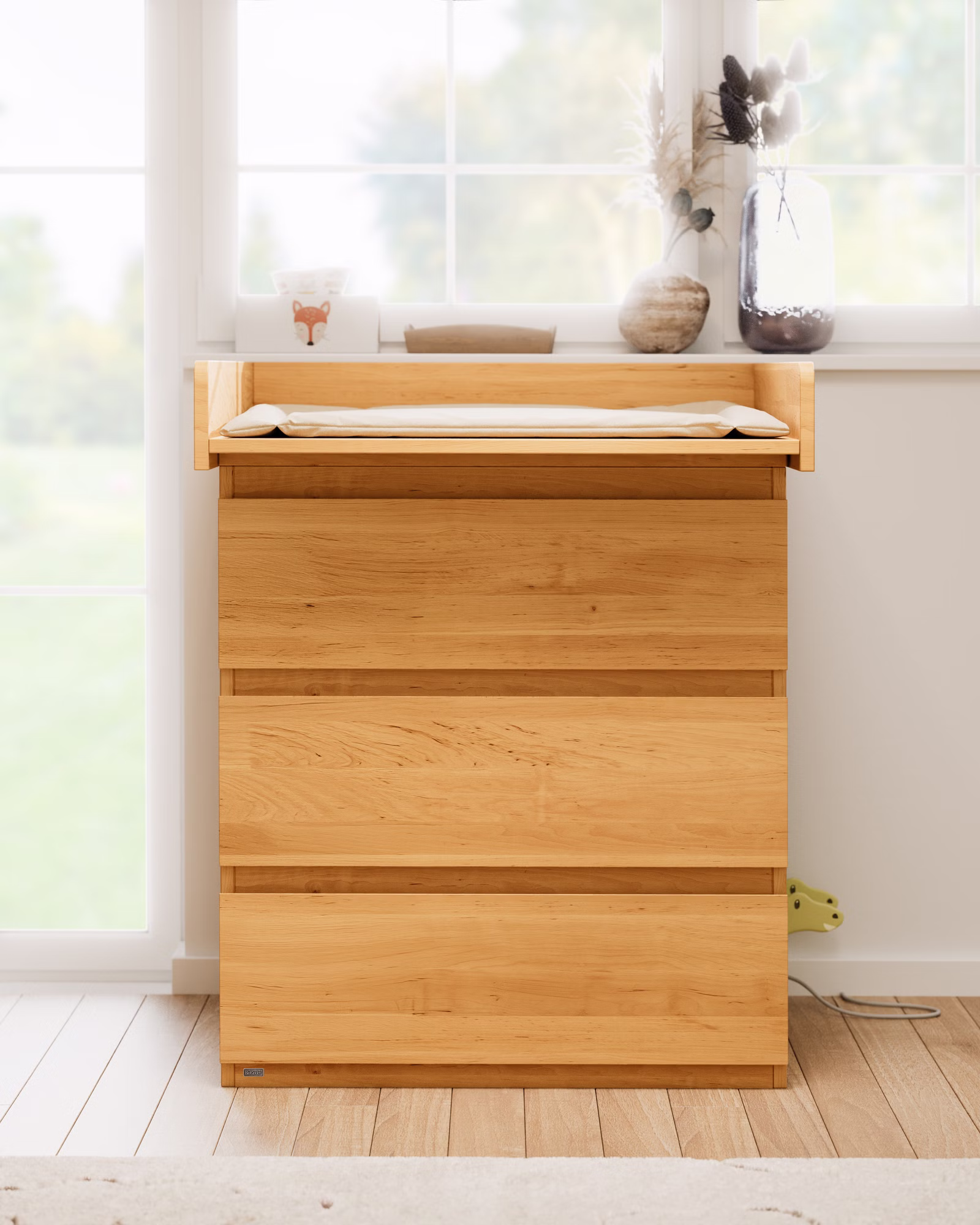 • Wickelaufsatz Finn: Sicherheit und Geborgenheit für Ihr Baby. Für Kommoden bis 80 cm Breite und 50 cm Tiefe. Nach der Wickelzeit einfach abnehmbar.