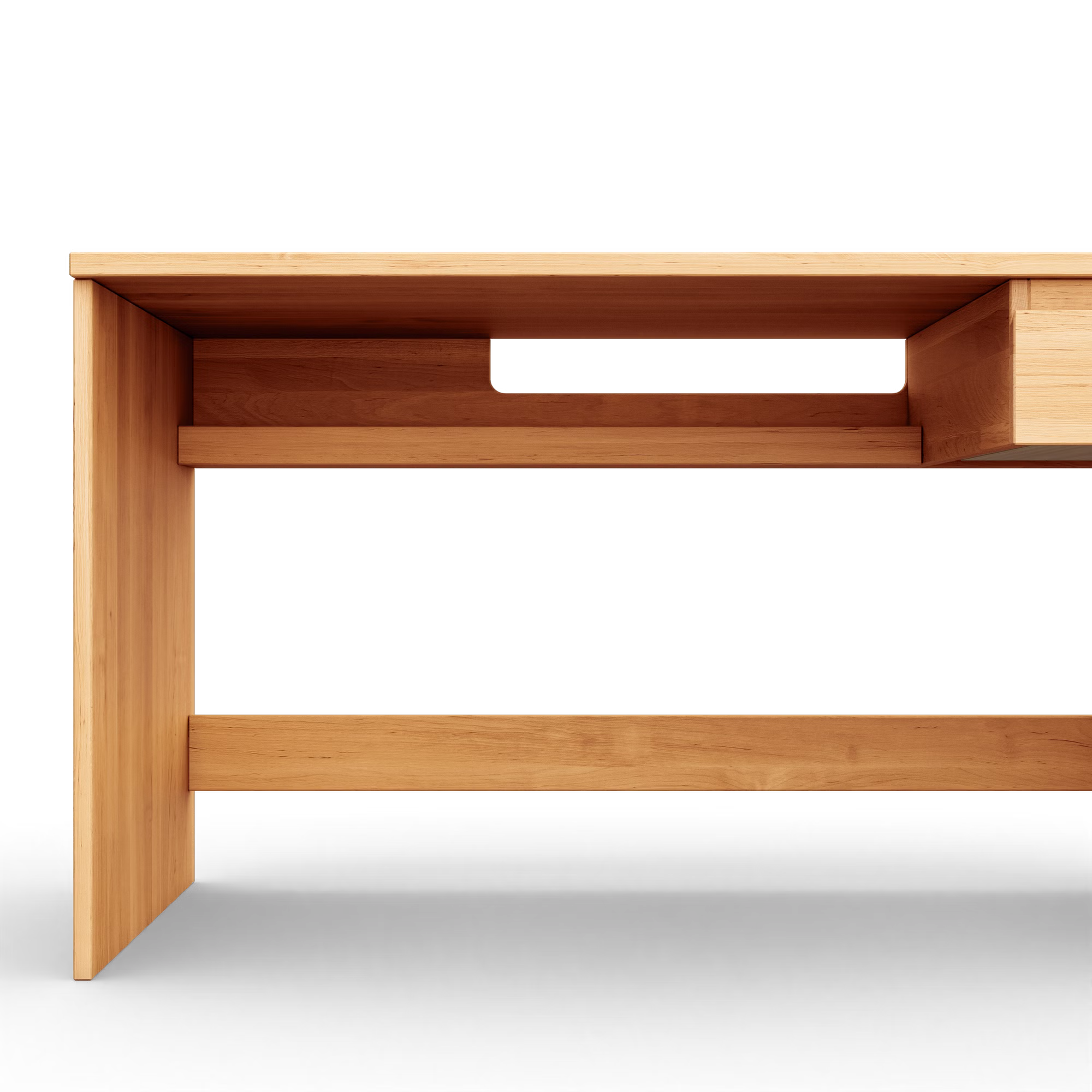 Der Finn Schreibtisch bietet noch mehr: Ein integriertes Kabelmanagement hält die Arbeitsfläche stets aufgeräumt.