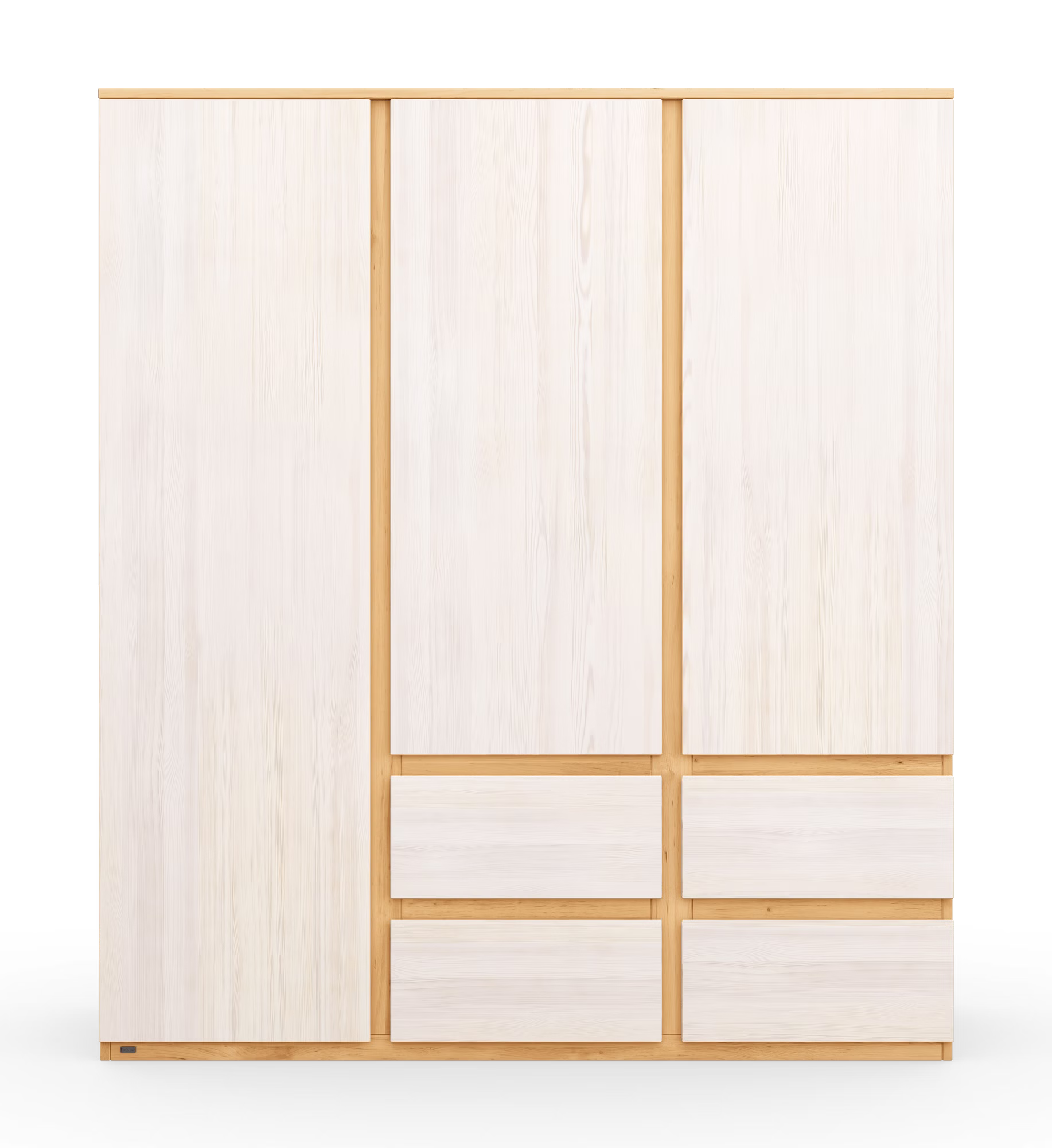 Unser Kleiderschrank Finn vereint großzügigen Stauraum mit stilvollem Design und höchster Funktionalität. Egal ob im Kinderzimmer, Wohnbereich oder Eltern-Schlafzimmer – der Kleiderschrank aus 100 % Bio-Massivholz fügt sich harmonisch in jedes Raumkonzept ein. Die klare Linienführung und die natürliche Maserung des Holzes auf den breiten Fronten verleihen jedem Raum eine warme und einladende Atmosphäre.