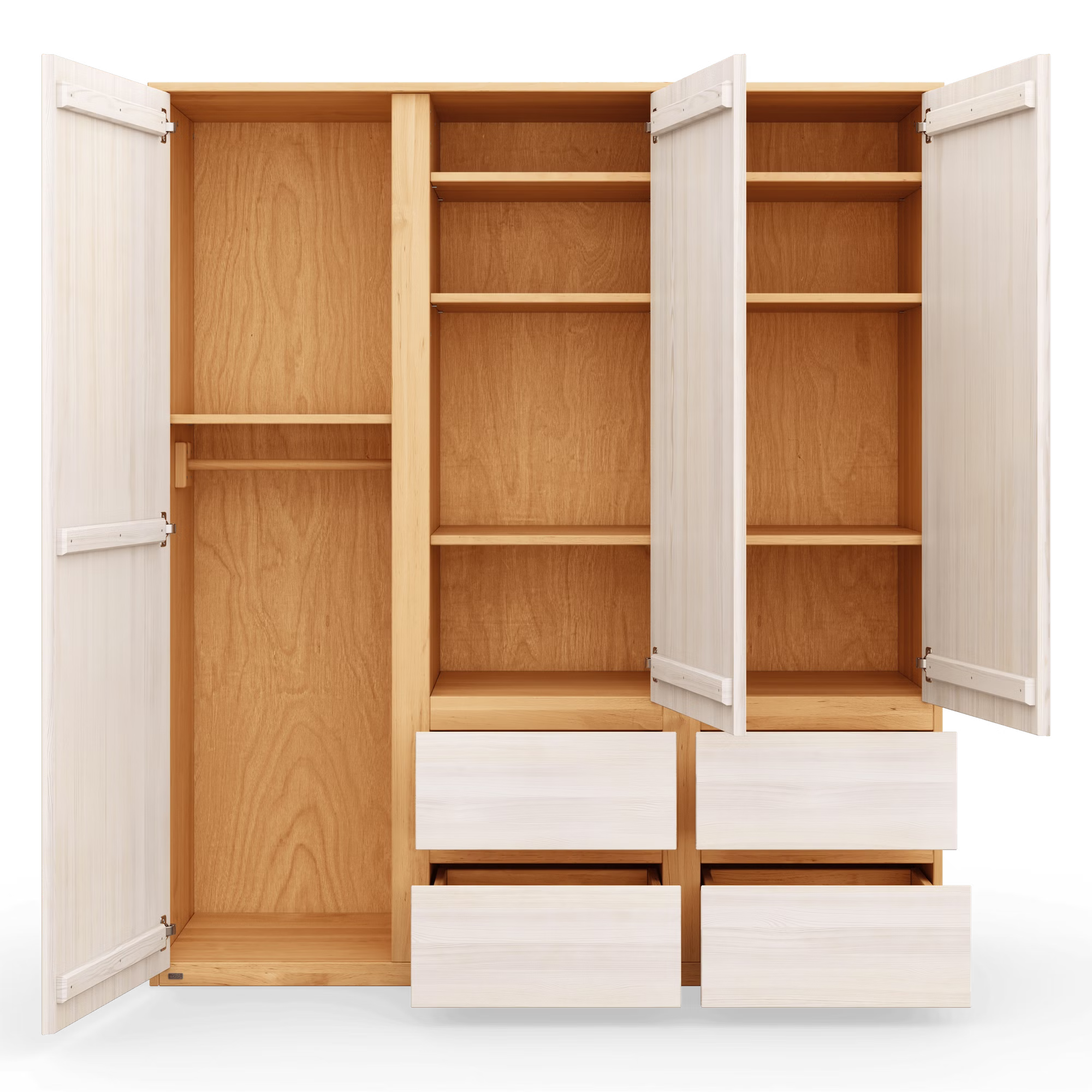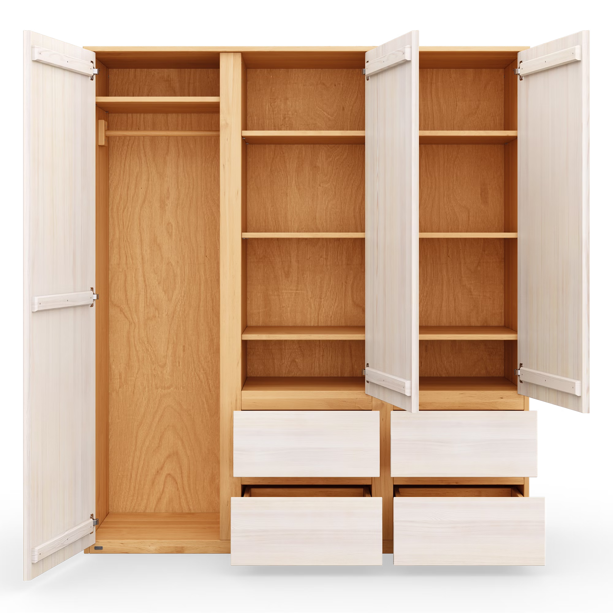 Dieser hochwertige Massivholzschrank bietet langlebige Qualität und ein zeitloses Design – perfekt für jedes Zuhause.