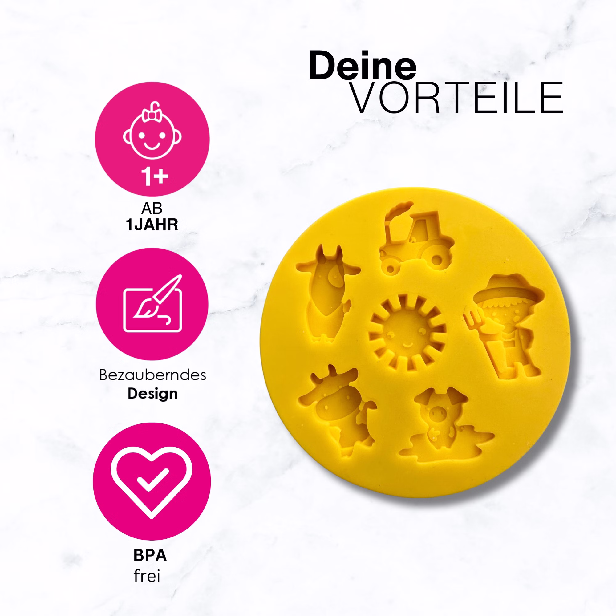 Entdecke ein zauberhaftes und hochwertiges Knetzubehör. Mit dieser Silikonform erleben Kinder die spannende Welt auf dem Bauernhof. Dank der kinderleichten Handhabung erzielen die Kleinen schnell Erfolgserlebnisse.