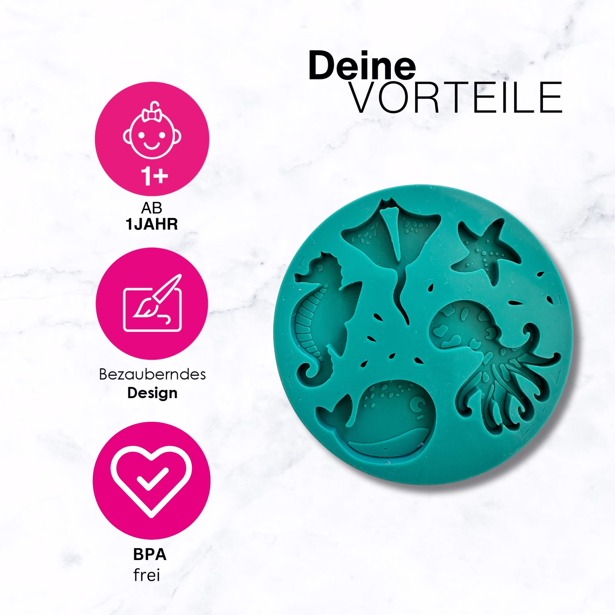 Entdecke ein zauberhaftes und hochwertiges Knetzubehör. Mit dieser Silikonform erleben Kinder die faszinierende Unterwasserwelt. Dank der kinderleichten Handhabung erzielen die Kleinen schnell Erfolgserlebnisse.