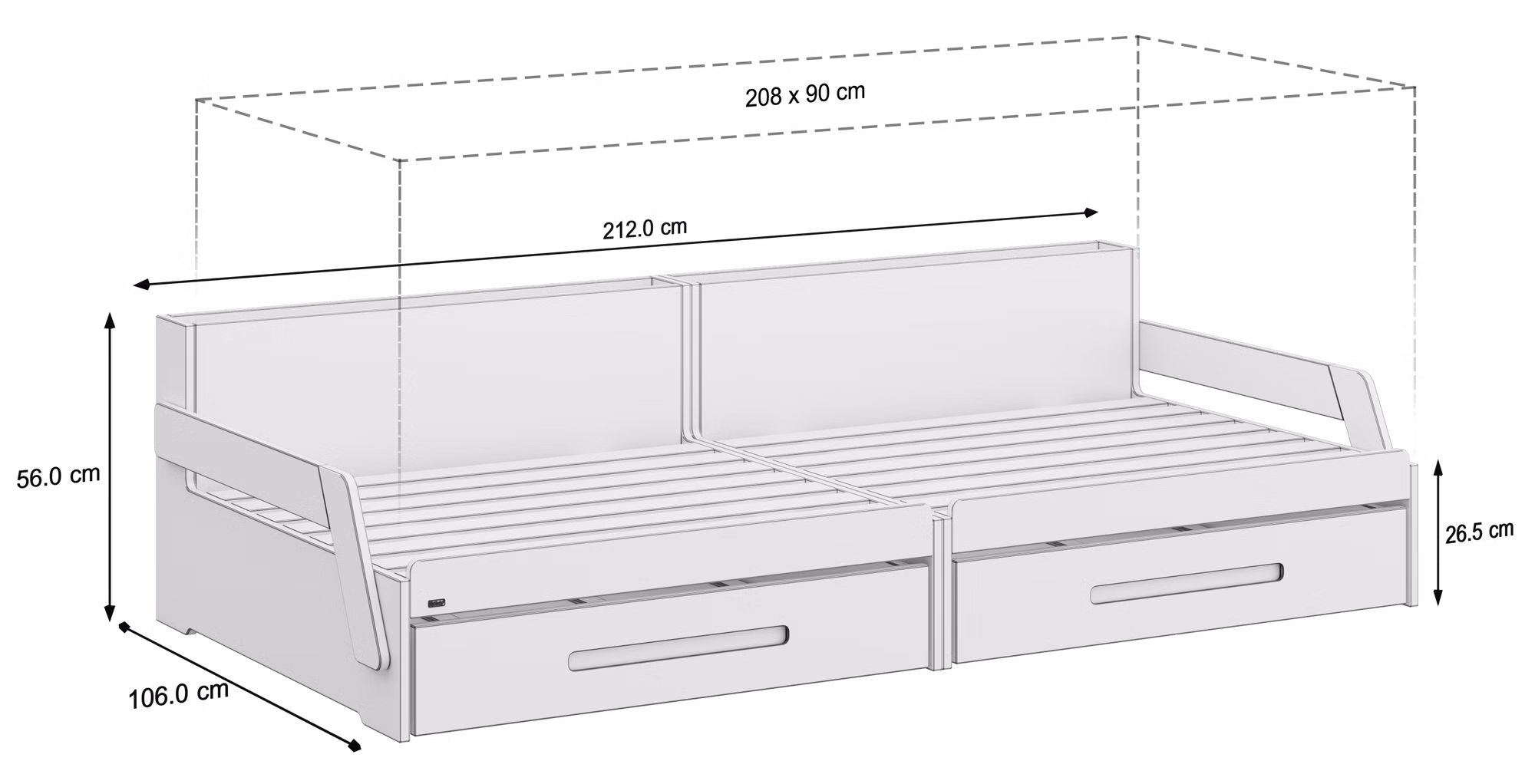 Außenmaße: 212 x 106 x 56 cm