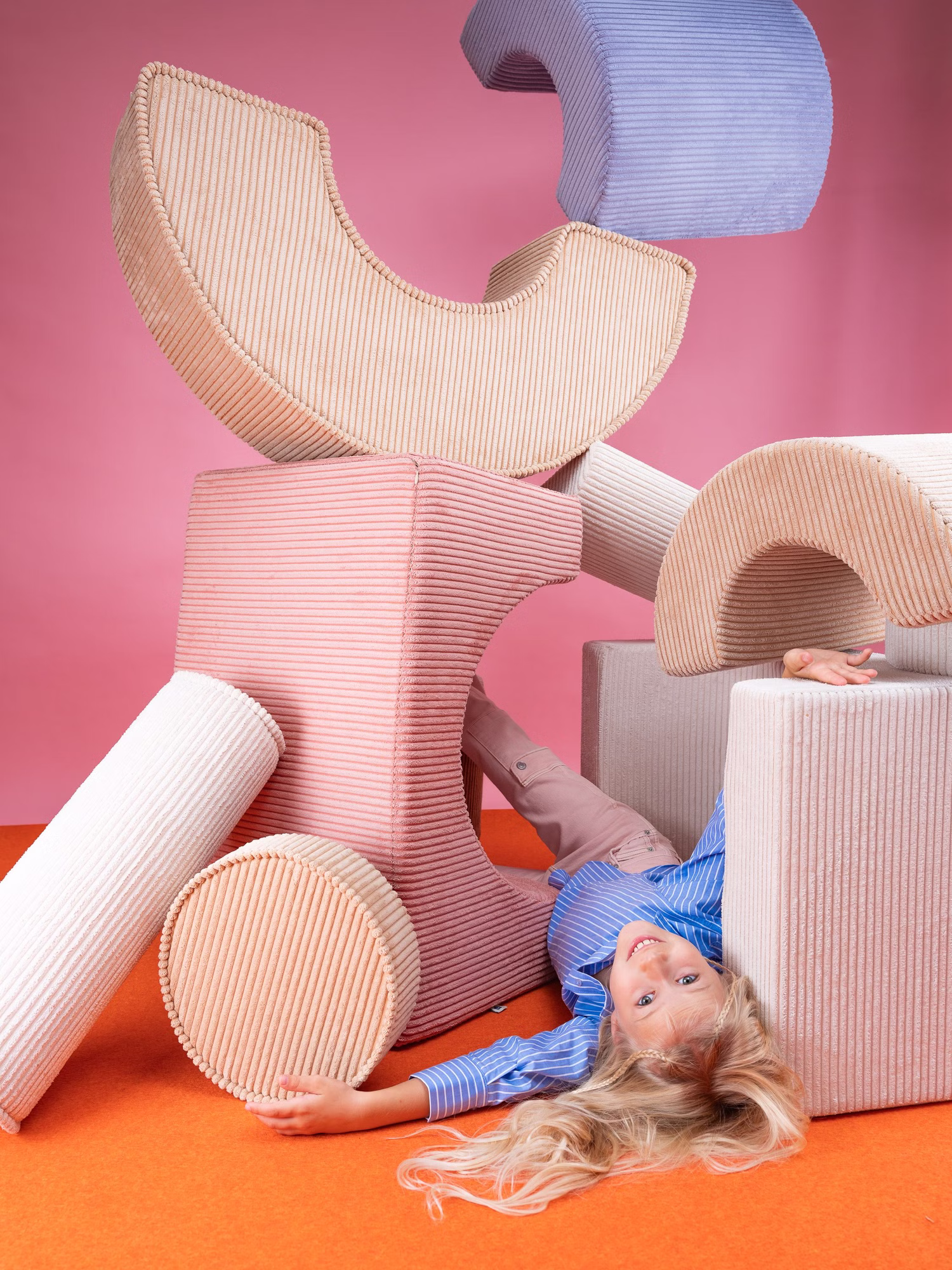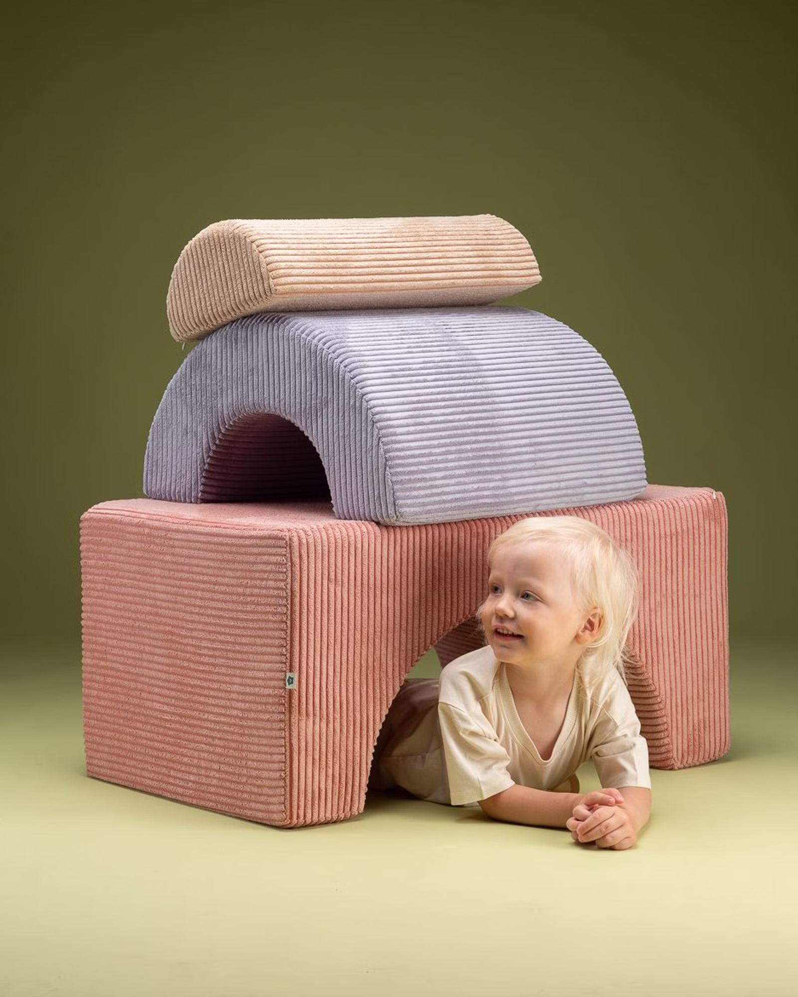 Das Spielset besteht aus robustem und dennoch federleichtem Schaumstoff. Mit seinen drei unterschiedlich geformten Modulen, die zusammen oder einzeln verwendet werden können, wird das Spielset zu einem Katalysator für grenzenlose Kreativität und Bauexperimente. Ob ein gemütlicher Stuhl, ein spielerischer Tisch, ein bequemer Hocker oder eine geheime Höhle - mit diesem vielseitigen Set sind sie bestens ausgestattet. Außerdem lässt sich der Cord Bezug, dank des Reisverschlusses, abnehmen und waschen.
