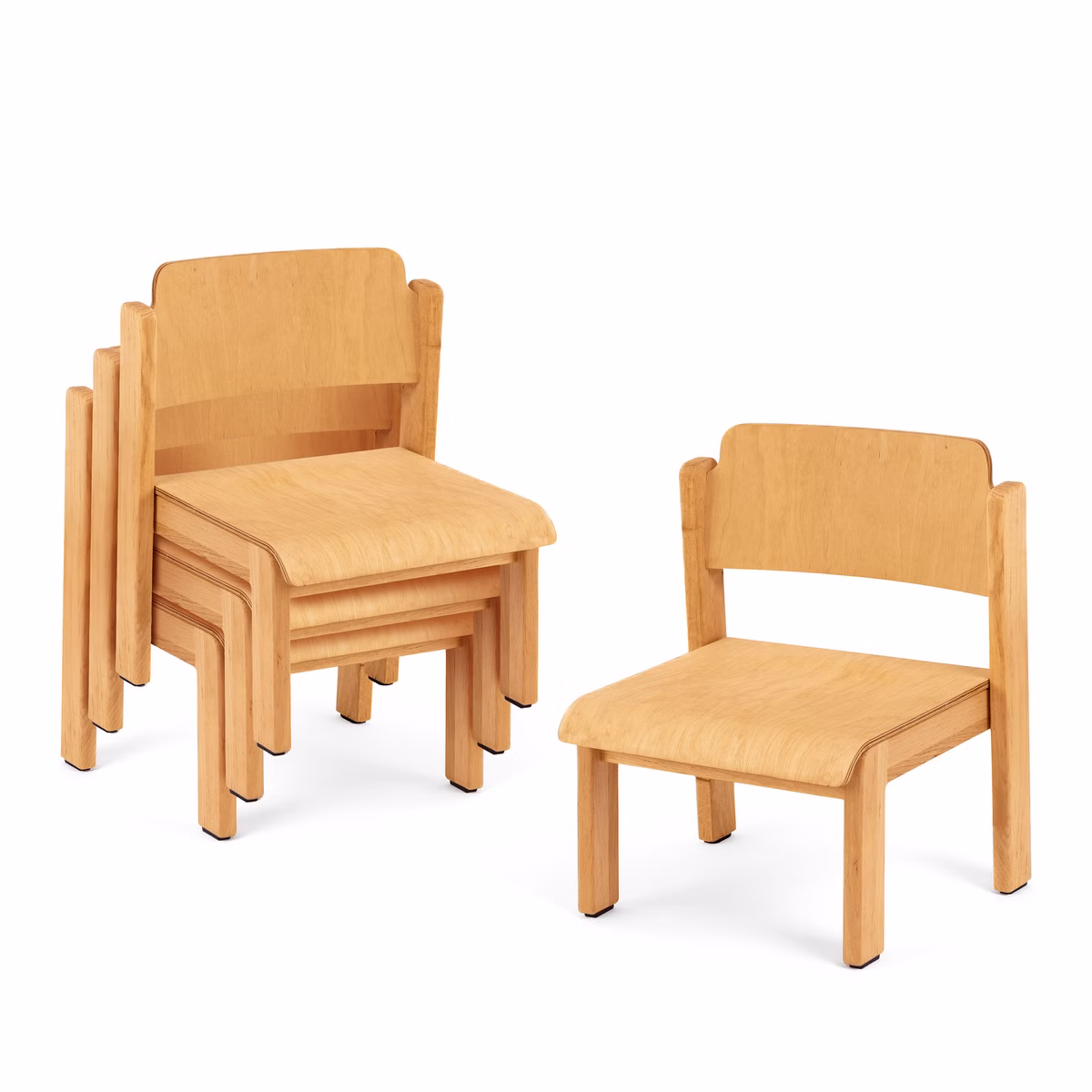 Unser Stapelstuhl Hugo, speziell für den Kindergarten, vereint höchste Qualität mit natürlichen Materialien, Ergonomie und Stabilität.