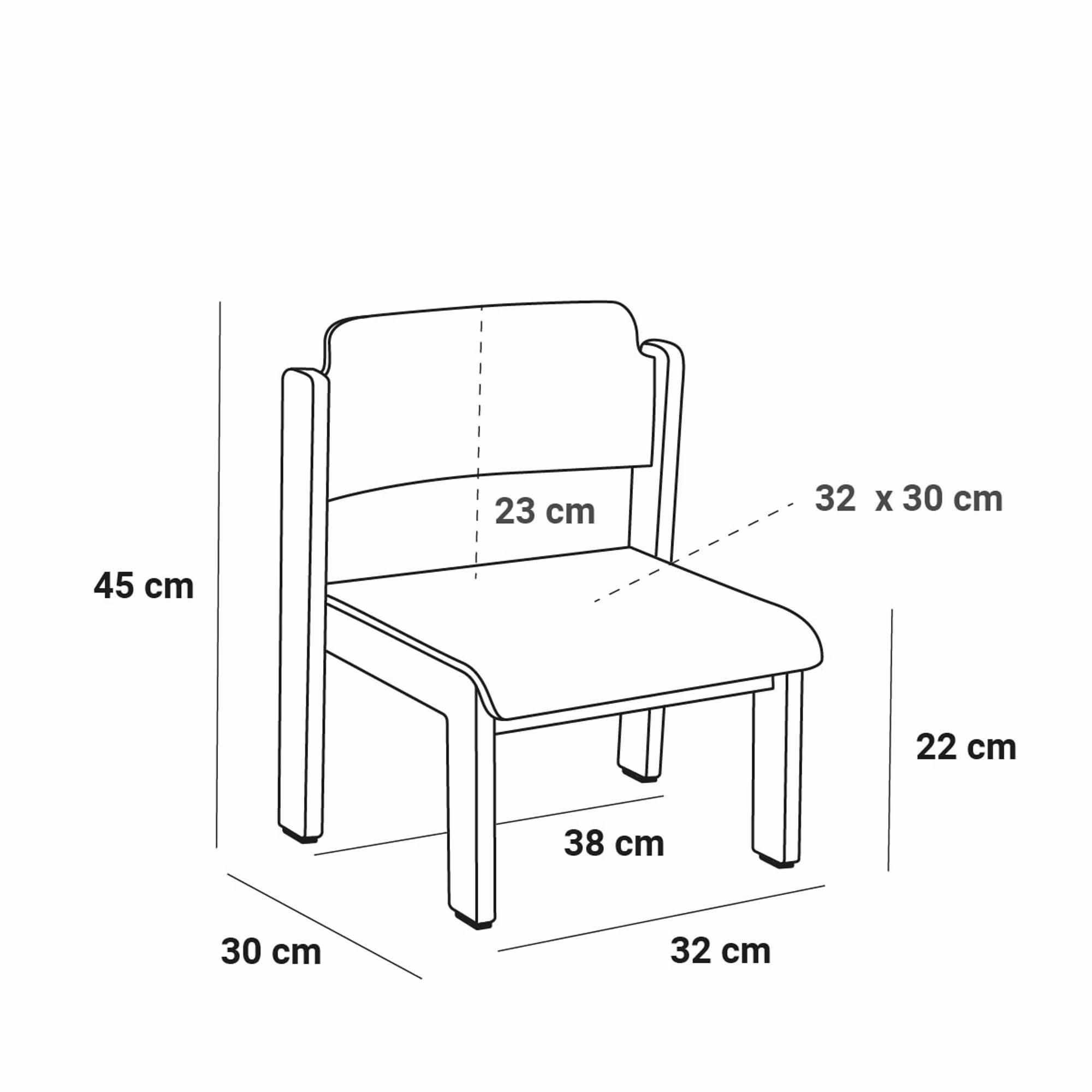 Hugo verfügt über eine ergonomisch geformte Sitzfläche und Rückenlehne, die höchsten Sitzkomfort bietet. Die leicht angewinkelten Hinterbeine sorgen für absolute Kippsicherheit, selbst bei den aktivsten Kindern. Alle Ecken sind kindgerecht abgerundet und fein gearbeitet. Zudem können die Stühle platzsparend gestapelt werden.