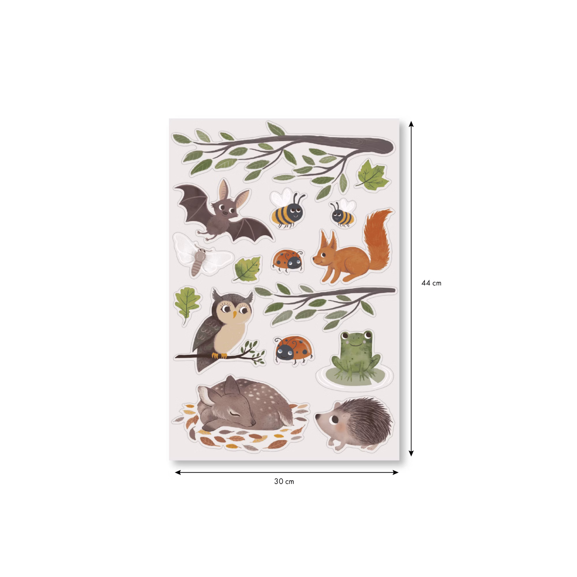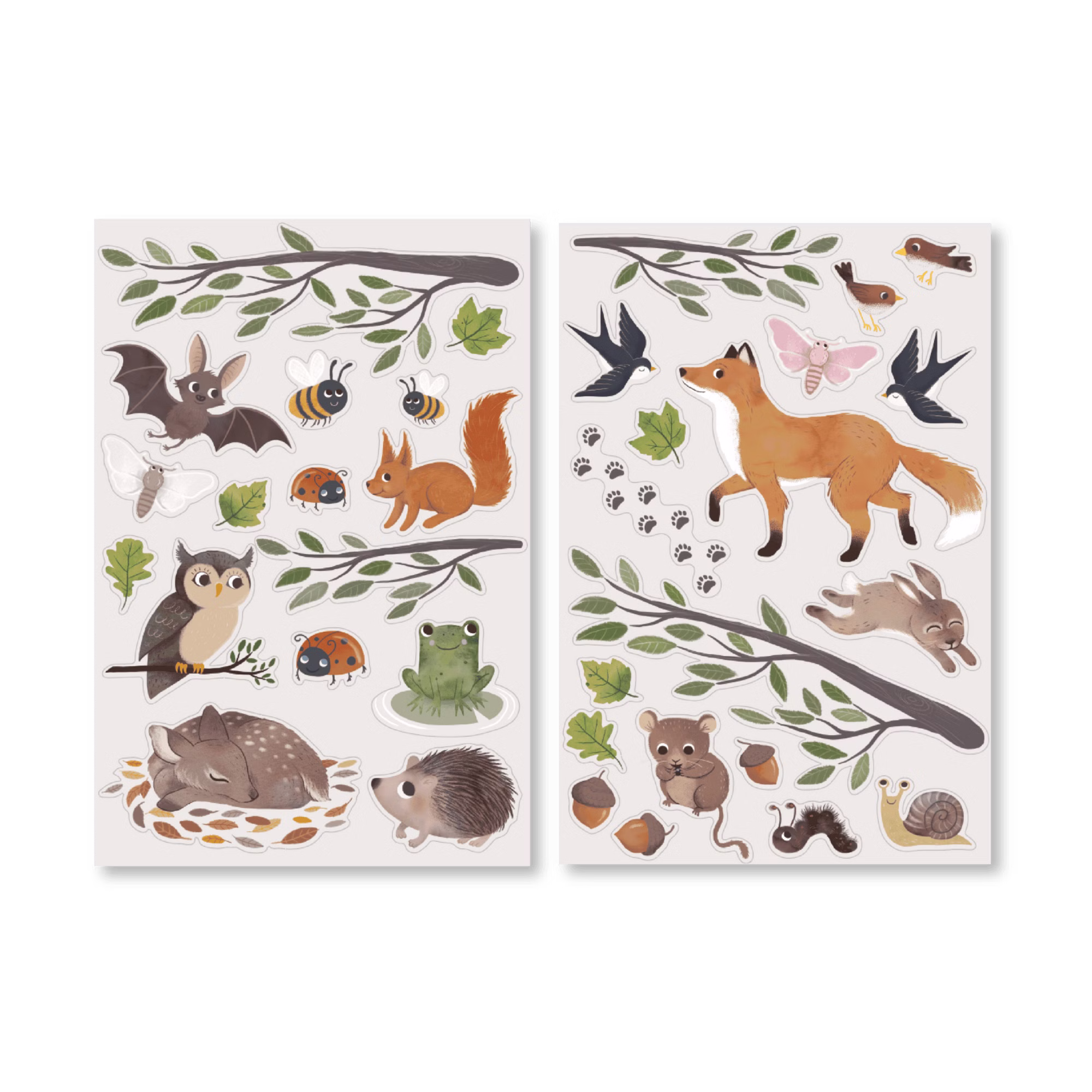 Das Set enthält eine bezaubernde Sammlung von Waldtieren - vom schlauen Fuchs und der weisen Eule bis hin zur kleinen Waldmaus und Schnecke. Verziert mit Zweigen und Blättern ermöglichen dir diese Aufkleber, ein magisches Waldstück zu gestalten, das von Charakteren bewohnt wird, die du vielleicht bereits kennst und liebst.