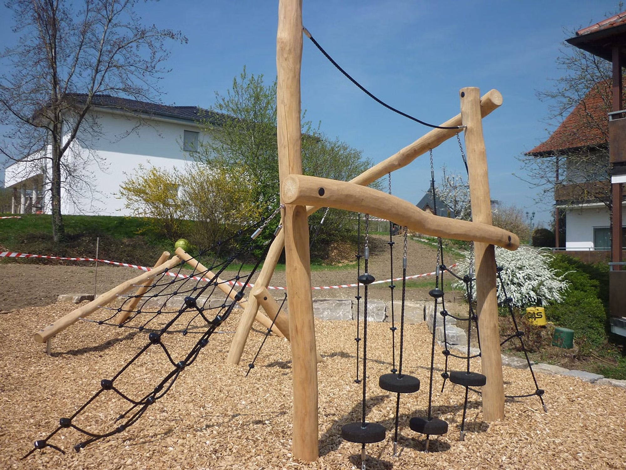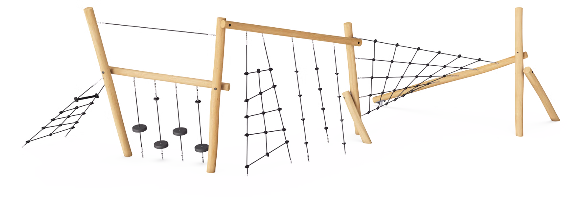Der Balancier- & Kletterpfad wird aus nachhaltigem und europäischen Robinienholz gefertigt.