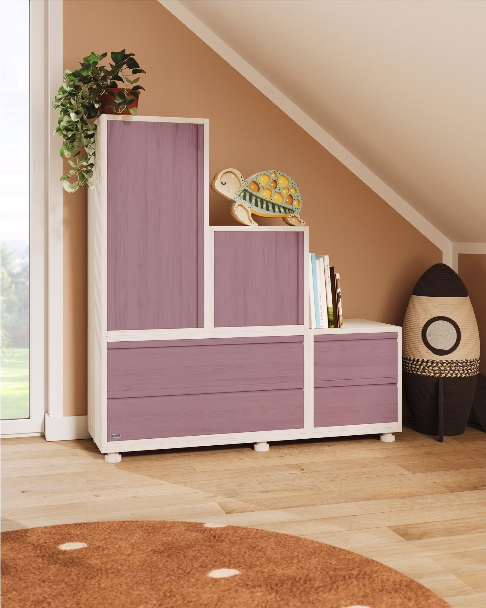 Unser Laura Regalwürfel mit 2 Schubladen wird aus Bio-Massivholz gefertigt und lässt sich vielseitig einsetzen! Kombiniert mit weiteren Laura Regalwürfeln ergeben sich individuell gestaltete Raumteiler, Kommoden oder Regale, die jedes Kinderzimmer ideal ergänzen und auch gut in Dachschrägen passen. Die eleganten Griffmulden der Schubladen machen unseren Laura Regalwürfel auch optisch zu einem echten Hingucker.