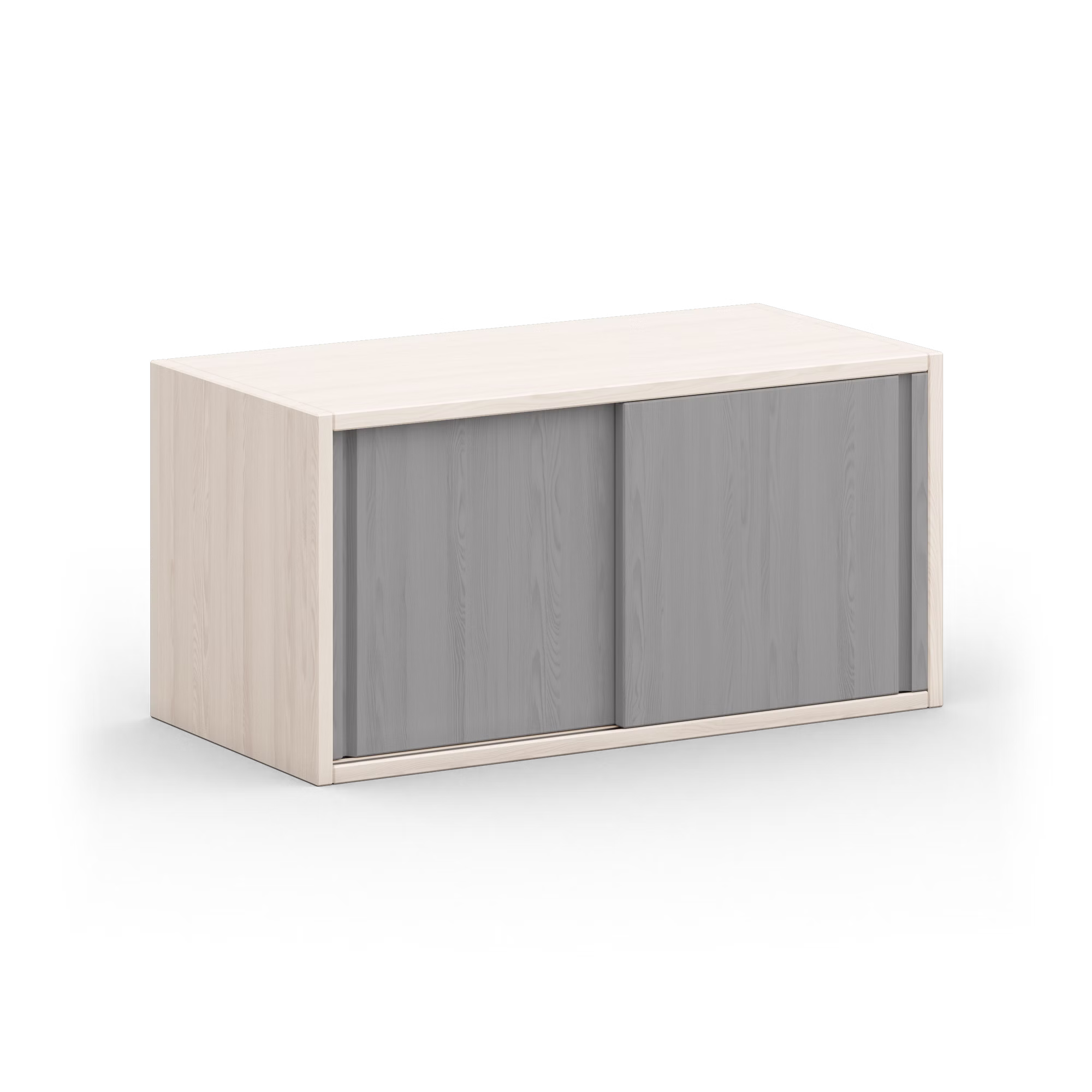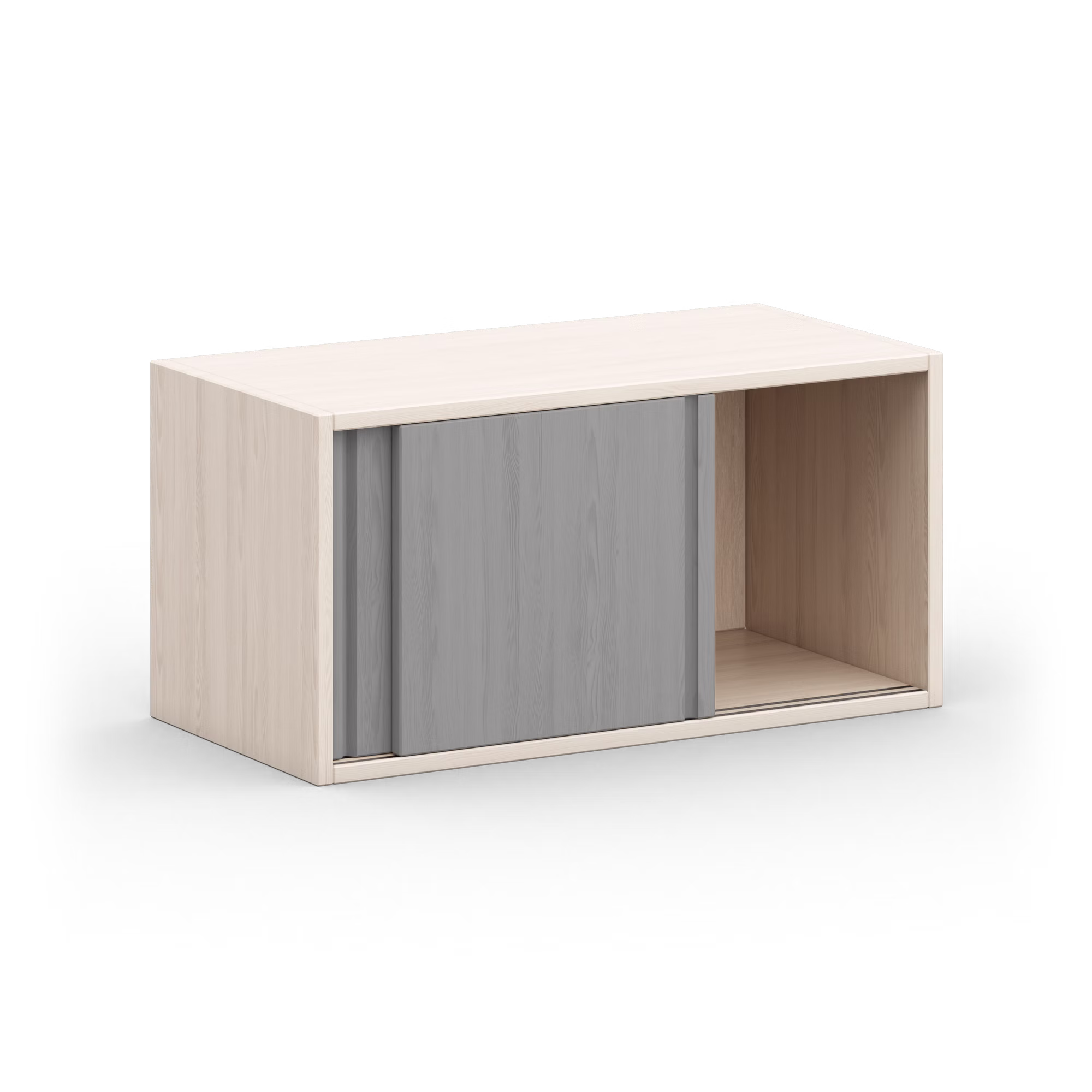 Die zwei Schiebetüren mit formschön gefrästen Griffkanten und Alu-Leichtlaufschienen lassen sich einfach bewegen und sind so der ideale Aufbewahrungsplatz für Gesellschaftsspiele, Schulsachen und vieles mehr.