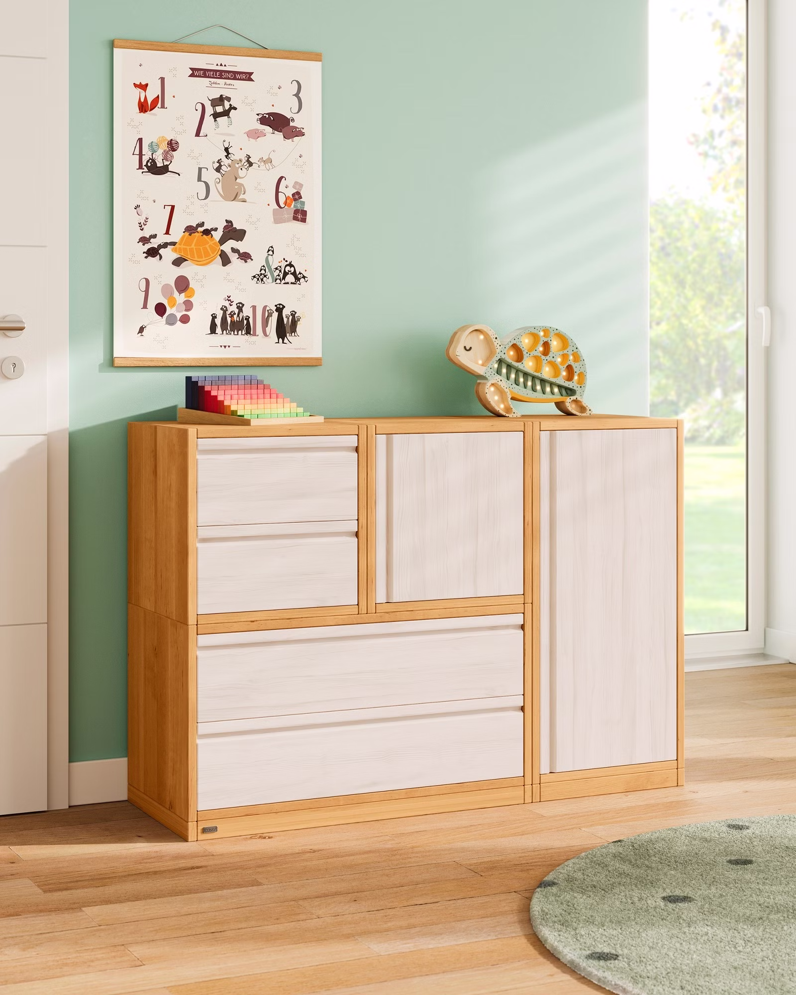 Massivholz aus nachhaltiger Forstwirtschaft. BioKinder Möbel werden aus massivem Erlenholz (natur) und Kiefernholz (weiß und bunt lasiert) gefertigt. Die natürliche Beschaffenheit jedes Möbelstücks wird durch bioola® nature Öl bzw. bioola® colour Lasur aus natürlichen Erd- und Mineralpigmenten und pflanzlichem Carnaubawachs erhalten und weiter veredelt.