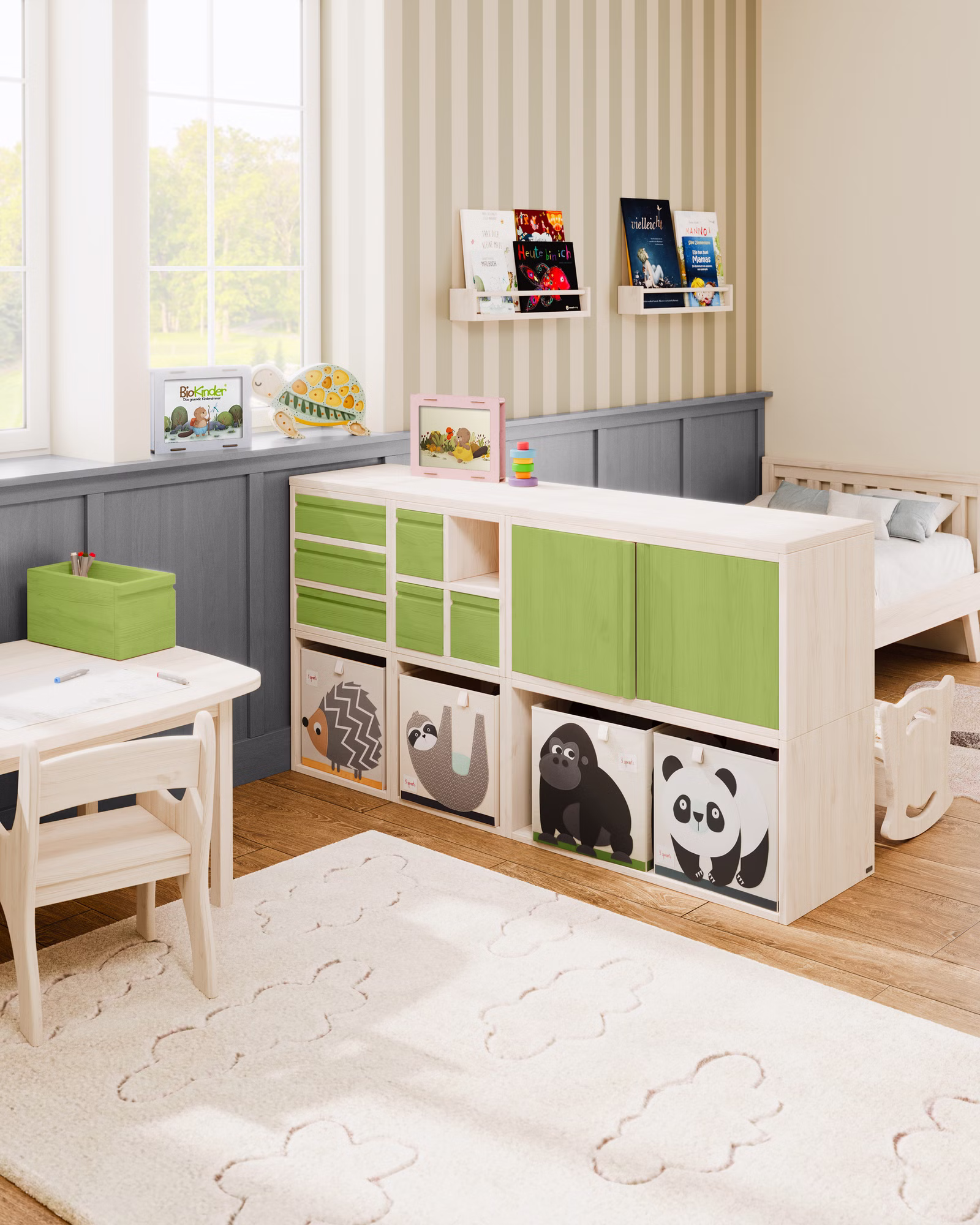 Massivholz aus nachhaltiger Forstwirtschaft. BioKinder Möbel werden aus massivem Erlenholz (natur) und Kiefernholz (weiß und bunt lasiert) gefertigt. Die natürliche Beschaffenheit jedes Möbelstücks wird durch bioola® nature Öl bzw. bioola® colour Lasur aus natürlichen Erd- und Mineralpigmenten und pflanzlichem Carnaubawachs erhalten und weiter veredelt.