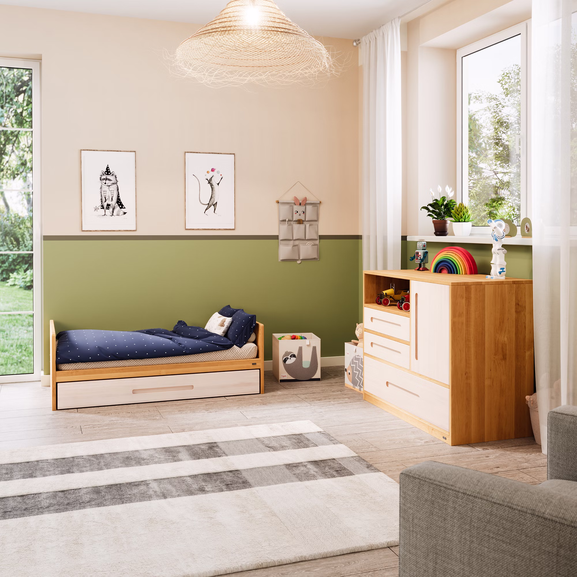 Für Kinder ist es wichtig, in einem natürlichen und gesunden Umfeld aufzuwachsen – und das fängt schon bei der Einrichtung des Kinderzimmers an. Unsere Lina Möbel bilden dabei die Grundlage für ein zeitlos schönes Kinderzimmer, das vom Baby- bis zum Jugendzimmer mitwächst.