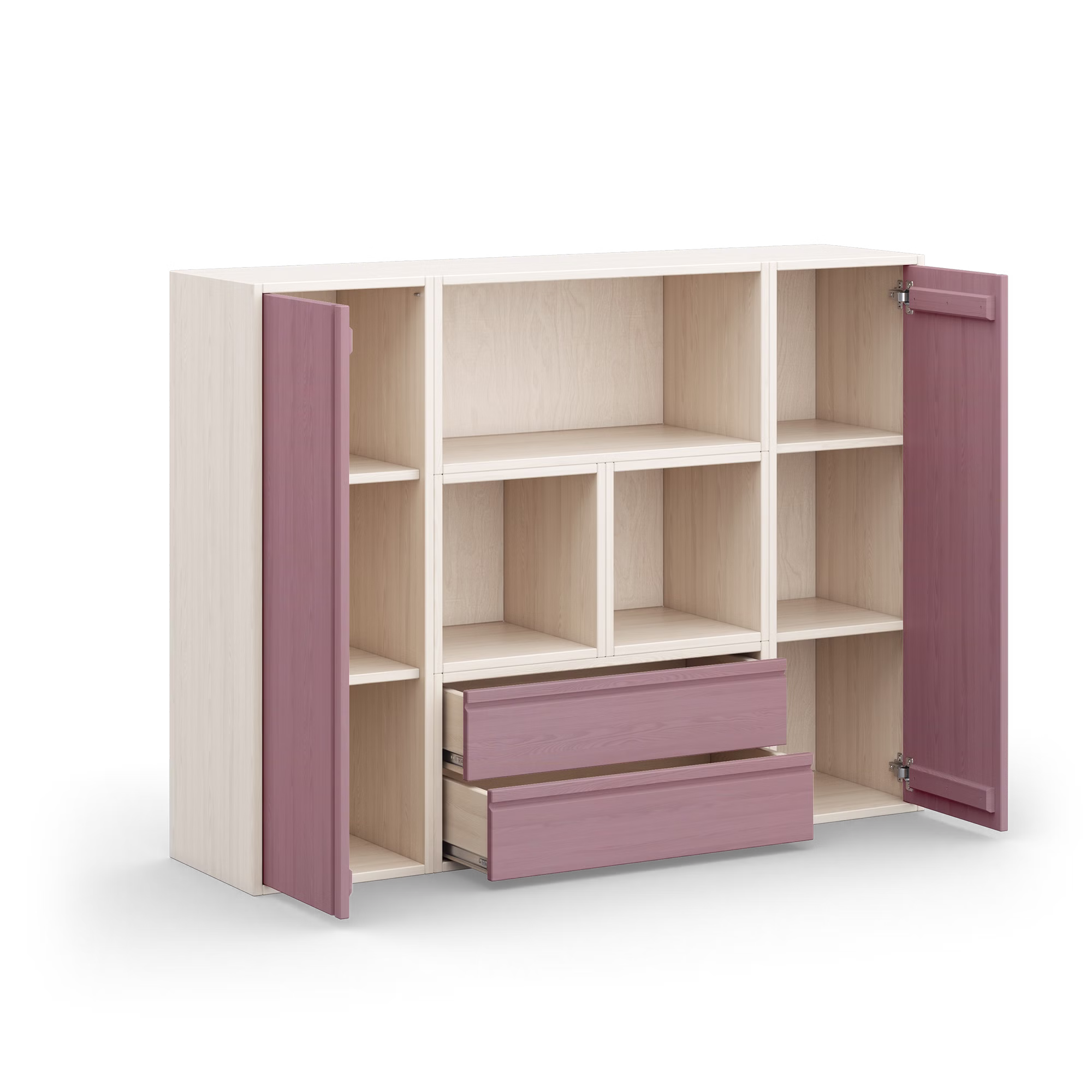 Das Laura Highboard ist ein vielseitiges Möbelstück, das speziell für die Bedürfnisse von Familien entwickelt wurde. Mit seinen großzügigen Maßen von 40 cm Tiefe, 160 cm Breite und 120 cm Höhe bietet es reichlich Stauraum für eine Vielzahl von Gegenständen. Dank seiner durchdachten Gestaltung eignet es sich hervorragend zur Aufbewahrung von Spielzeug, Büchern und anderen Schätzen im Kinderzimmer. Gleichzeitig fügt es sich nahtlos in den Flur oder das Wohnzimmer ein und ist so ein langlebiger und zeitloser Begleiter über die Kindheit hinaus. Die Kombination aus offenen Fächern, Türen und Schubladen ermöglicht eine flexible Organisation, die den unterschiedlichen Anforderungen des Familienalltags gerecht wird.