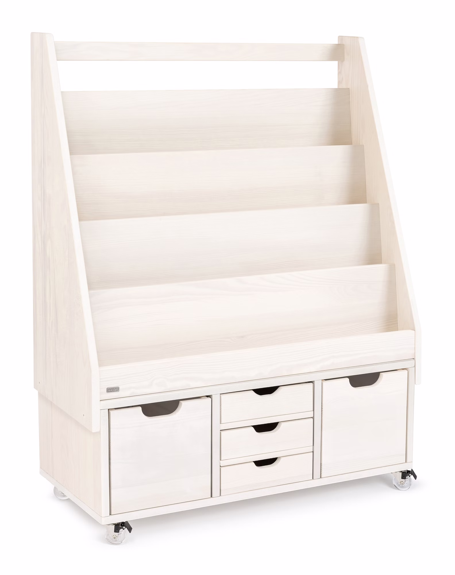 Der geniale Alleskönner für den Kita-Alltag. Diese Regalkombination erlaubt das Transportieren von Büchern oder Bastelutensilien innerhalb des Kindergartens.