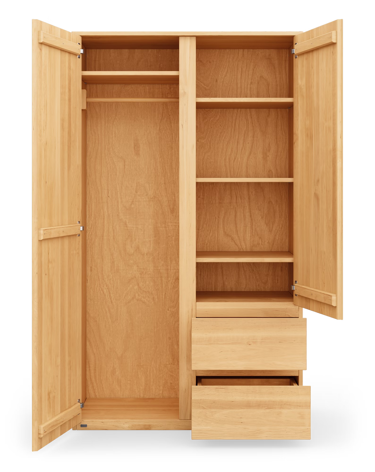 Lieferung inklusive vier Einlegeböden und einer Kleiderstange. Kann mit zusätzliche Einlegeböden oder Kleiderstangen ergänzt werden.