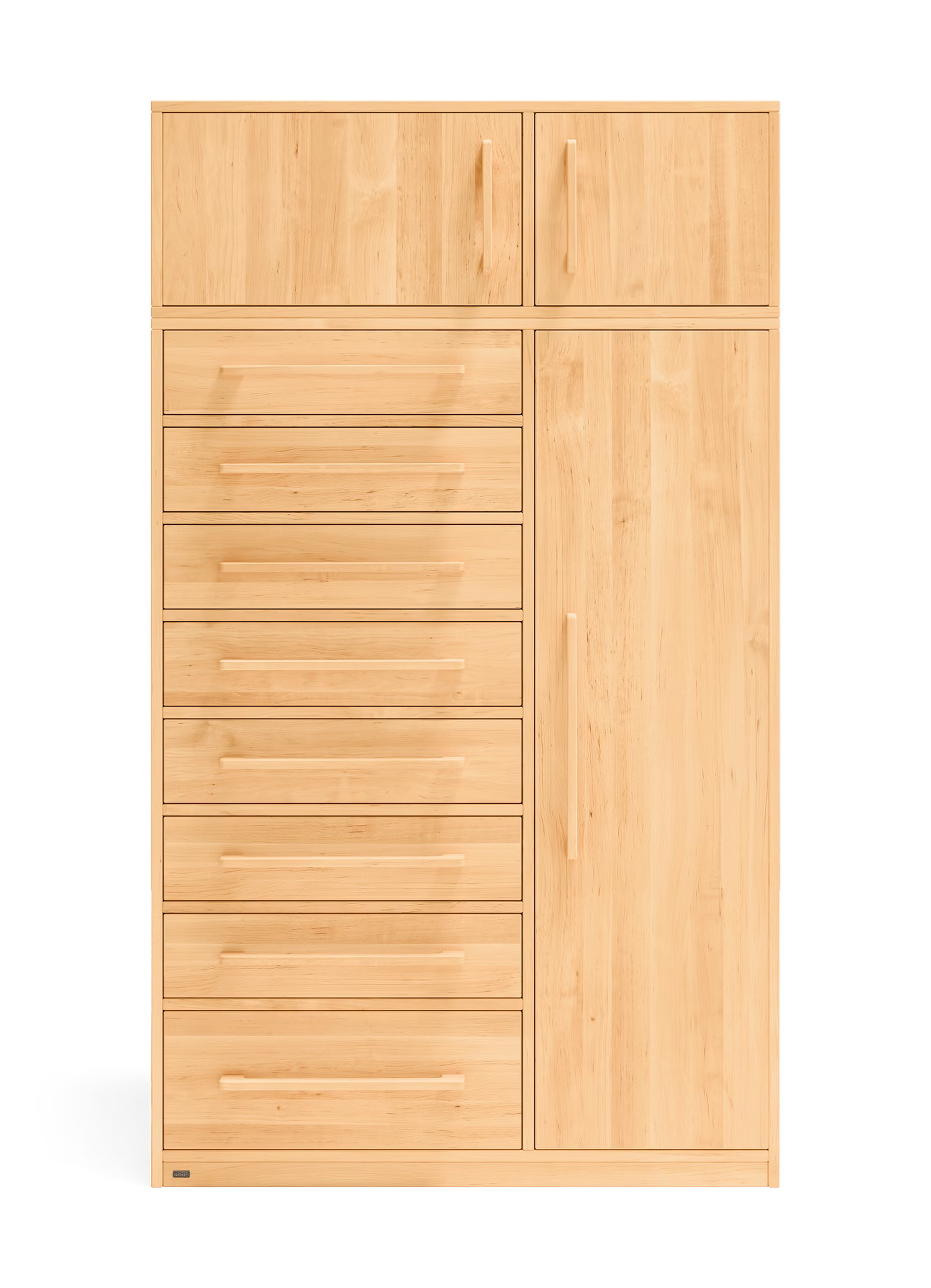 Unser Henry Kommodenschrank findet in jedem Kinder- und Schlafzimmer, aber auch im Flur als Garderobenschrank Platz. Die acht leichtlaufenden Schubladen des Kommodenschranks sind mit Selbsteinzug und Soft-Close-Mechanismus für sicheres und geräuscharmes Schließen ausgestattet. Zudem lassen sie sich voll ausziehen und bieten so einen einfachen Einblick bis in den hintersten Bereich der Schubkästen.